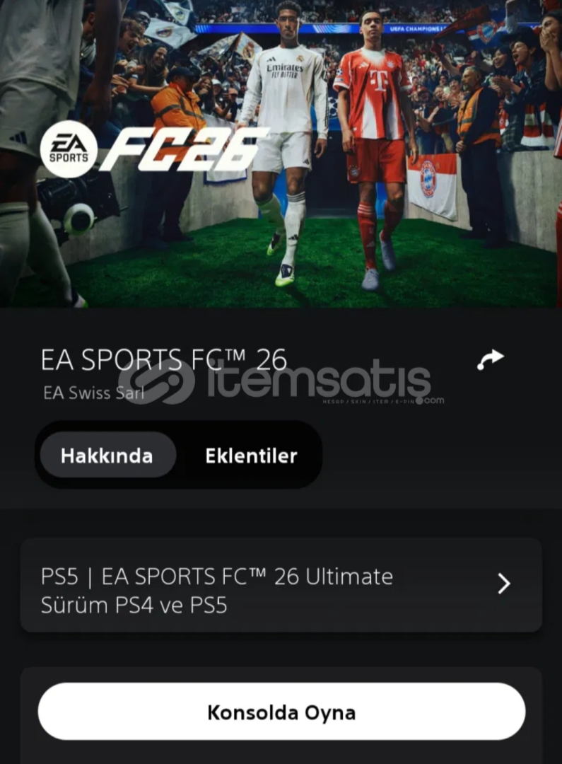 - Hesap FC26 Ps Store Üzerinden Mail Şifre ile Beraber Tamamen Sorunsuz Satılmaktadır.