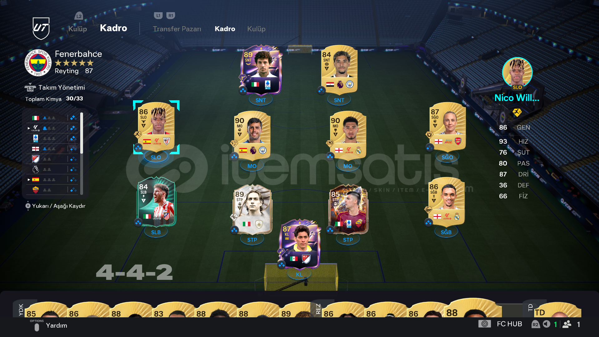 KADRO DEĞERİ YÜKSEK OLUP ERKEN ERİŞİM HESABIDIR KADRO DİZİLİDİR. DİREKT ALIP OYNAYABİLİRSİNİZ. EA HESABI VERİLECEKTİR. EA HESABI ÜSTÜNE KADRONUN YARISINDANN FAZLASI SATILIKTIR. OYUNCULARI SATIP KENDİ KADRONUZU KURABİLİRSİNİZ.