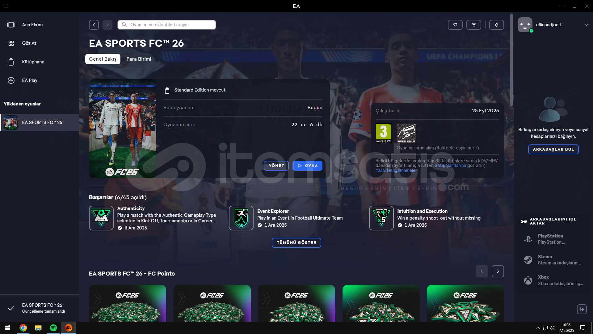 Merhabalar. MAİL DEĞİŞİKLİĞİ YAPILACAKTIR. Maili önemli yerlere kayıt olduğum için veremem. Ama mail değişikliği yapılacaktır.!!! Hesabım EA dedir. Ultimate Team çok oynanmadı. Bilgisayarım kastığı için oynayamadım çok fazla. Ondan dolayı satıyorum. Bir kaç görev yaptım o kadar. Tertemiz. Uyguna. Steam ya da Epicle uğra#...