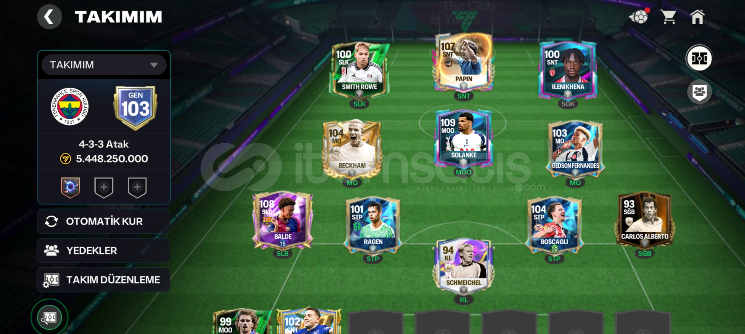 Hesapta Eskiden Pazardan Alınan Şuanda Alınamayan Değerli oyuncular vardır.Hesapta Ölü Bağ Yoktur Gönül Rahatlığıyla Alabilirsiniz.Hesapta Bir Sorun Çıkarsa İade mevcuttur . Hesabı Beğenmedim Gibi İade istekleri kabul edilmez Hesapta 108 Balde103 Gedson FernandesÖzel İkon Kadrosu ! 4.000+ Gem+Değerli şeyler vardır.Simdiden Hayırlı Olsun! Keremreizs Güvencesi &#...