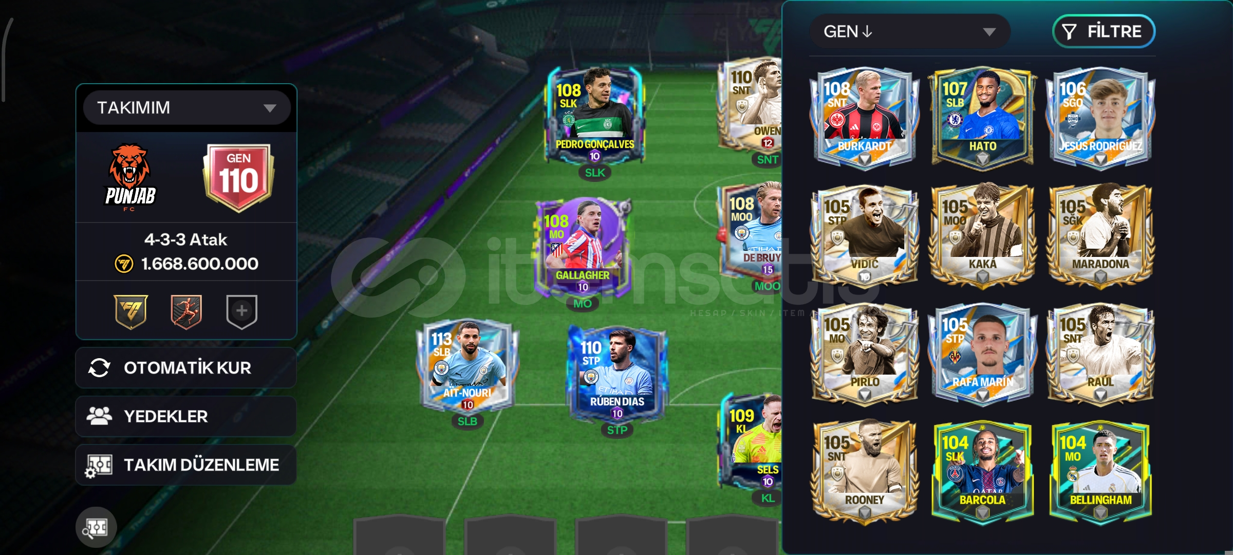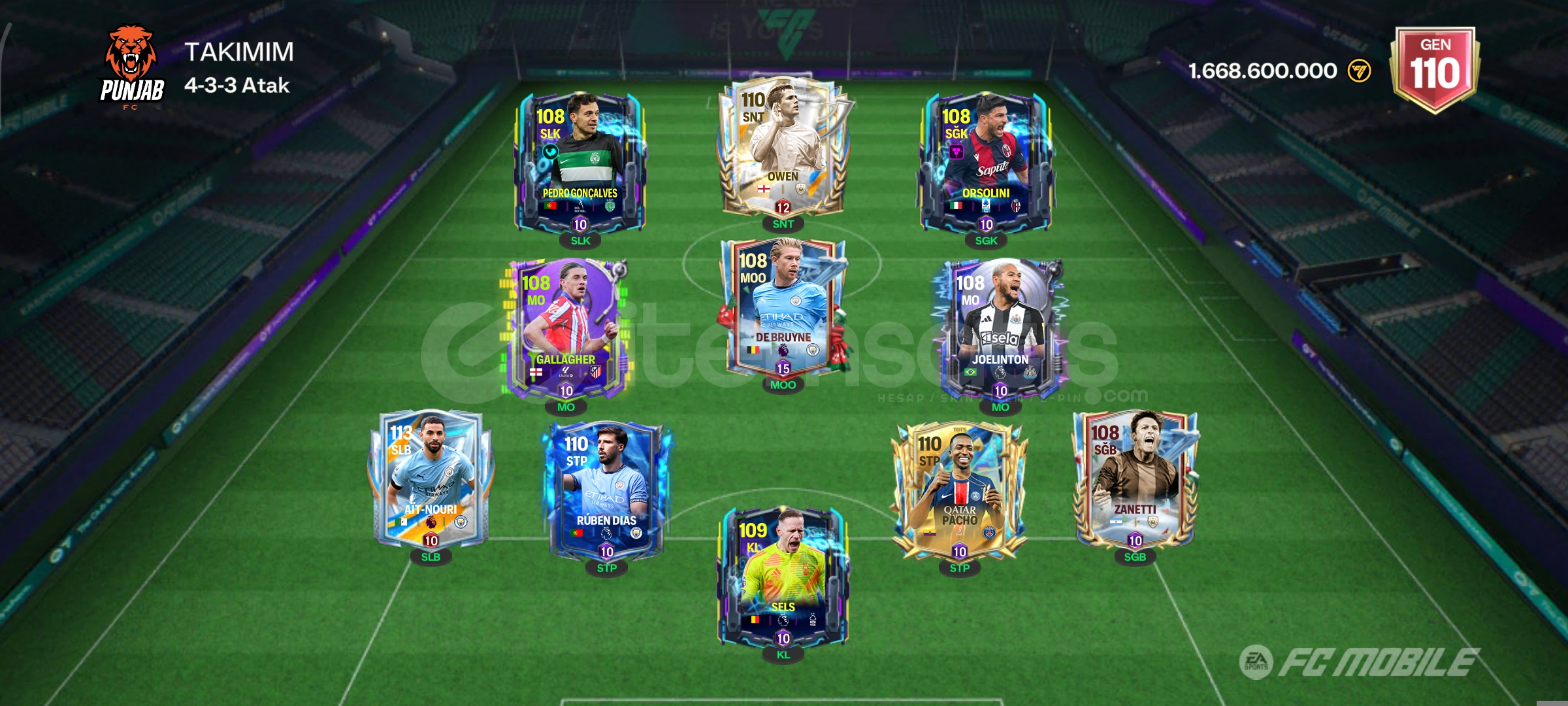 • Hesap, sadece efsanevi oyunculardan ibaret değil. Yüksek miktarda coins ile anlık transfer ve geliştirme özgürlüğüne sahipsiniz.​