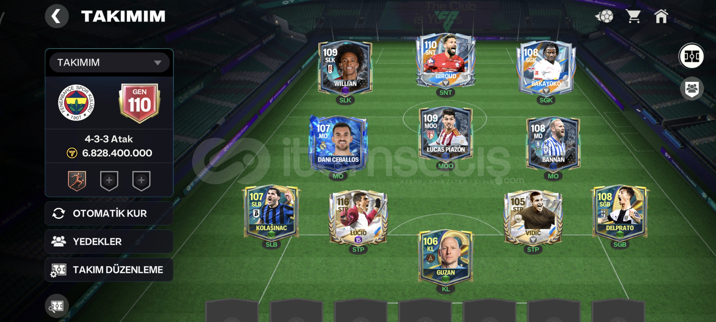 hesap 110gendir+300m satılanilir oyuncu vardır116gen lucio kartı mevcutturhesap tek bağ ea bağlıdırHesap mail ile verilecektirAlan kişiye hayırlı olsun