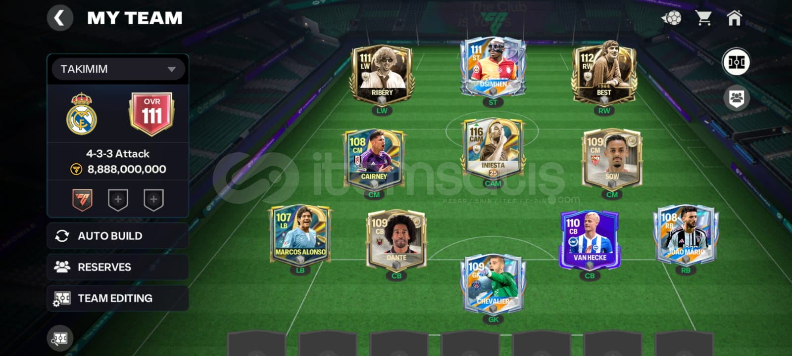 111 GEN EFSANE HESAP, 19 SEVİYE, 10K CEVHER VE 80M ALTIN YANINDA!! ÇOK UCUZ FİYATA!!Hesabı satın aldığınızda FC Mobile hesabınıza girebilmeniz için Gmail hesap bilgileride verilecektir.Hesaba girdikten sonra hesap bilgilerinzi dileğinize göre değiştirebilirsiniz!