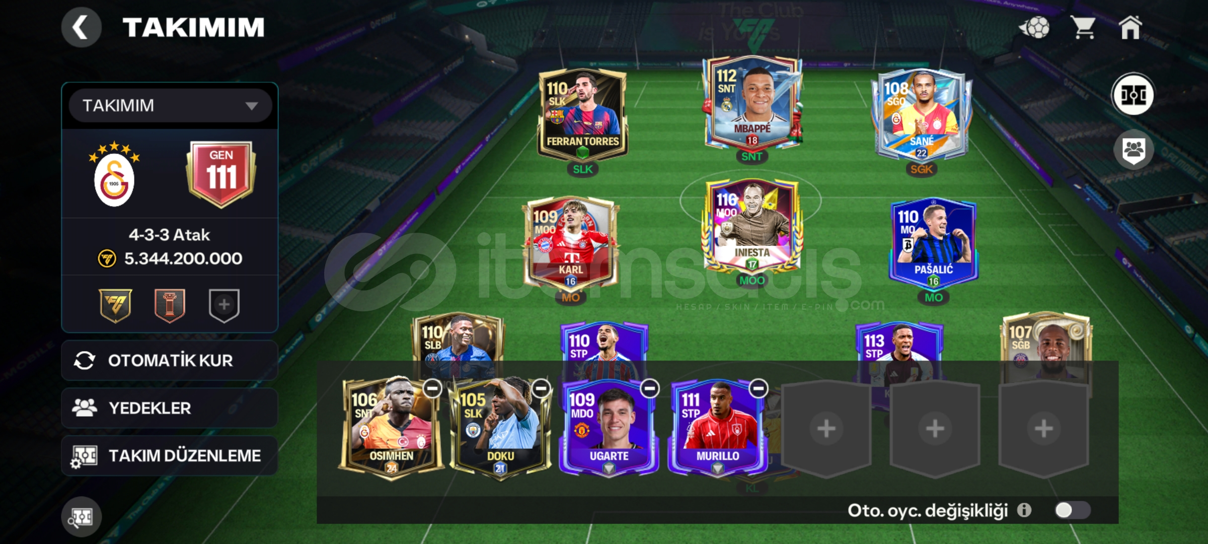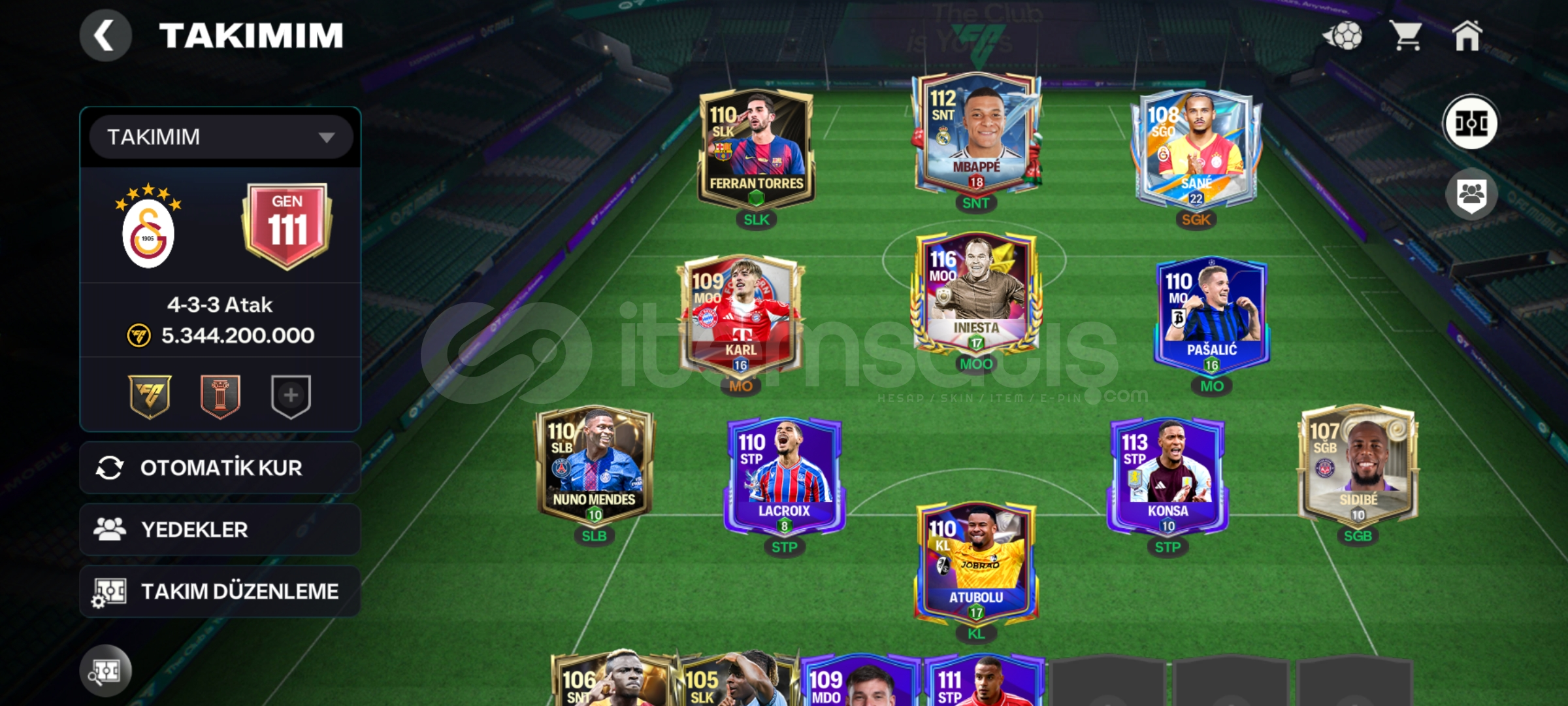 112 Mbappe'108 sane,116 iniesta, takım hepsi 100-116 arasıdır Güzel hesap aciliyetinden satılıktır alıcın...