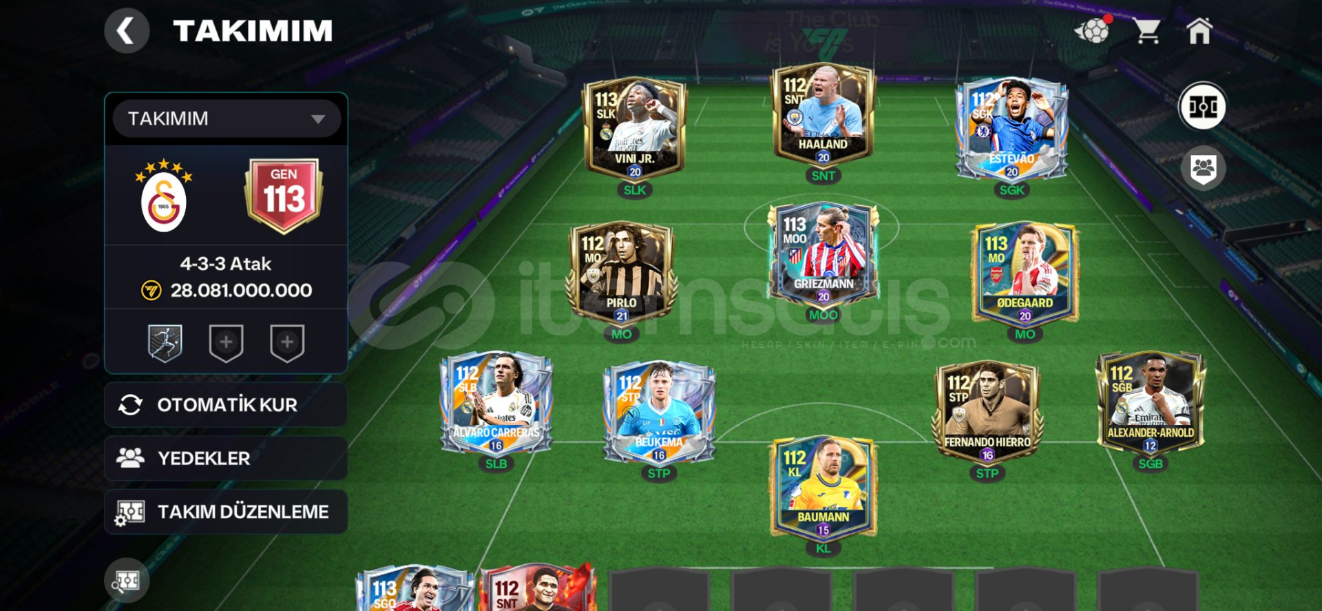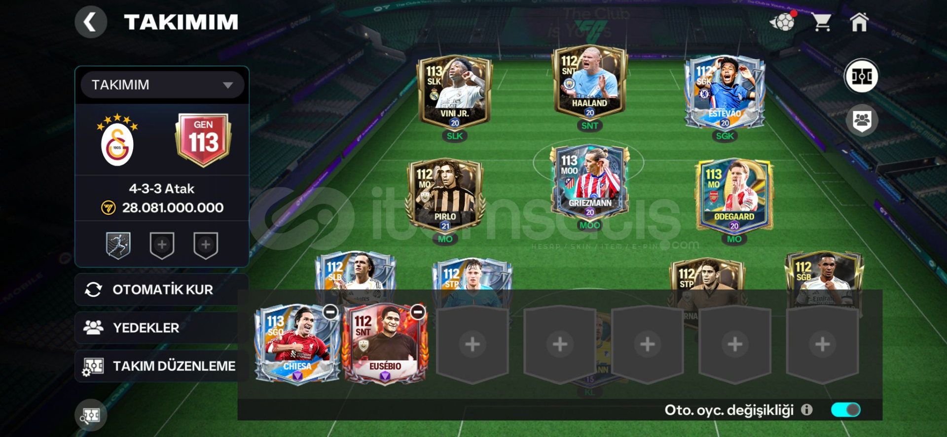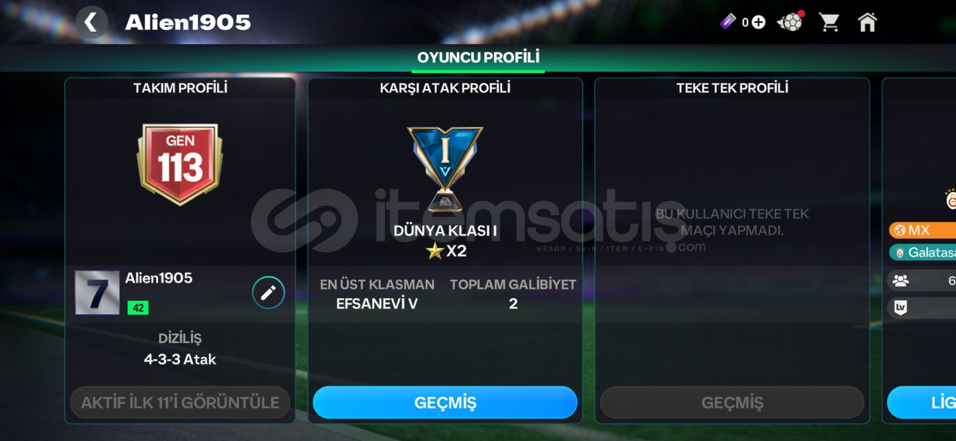 113 gen 114 de az var Tek bağ ea hesabı olarak vericem al sat yapıyorum 42lv hesap fc şampiyonu gördü 2 satılabilir oyuncu bulunuyor oyuncular full değil bazıları 2 bazıları 3 yükseltilmiş durumda pazarlık az var