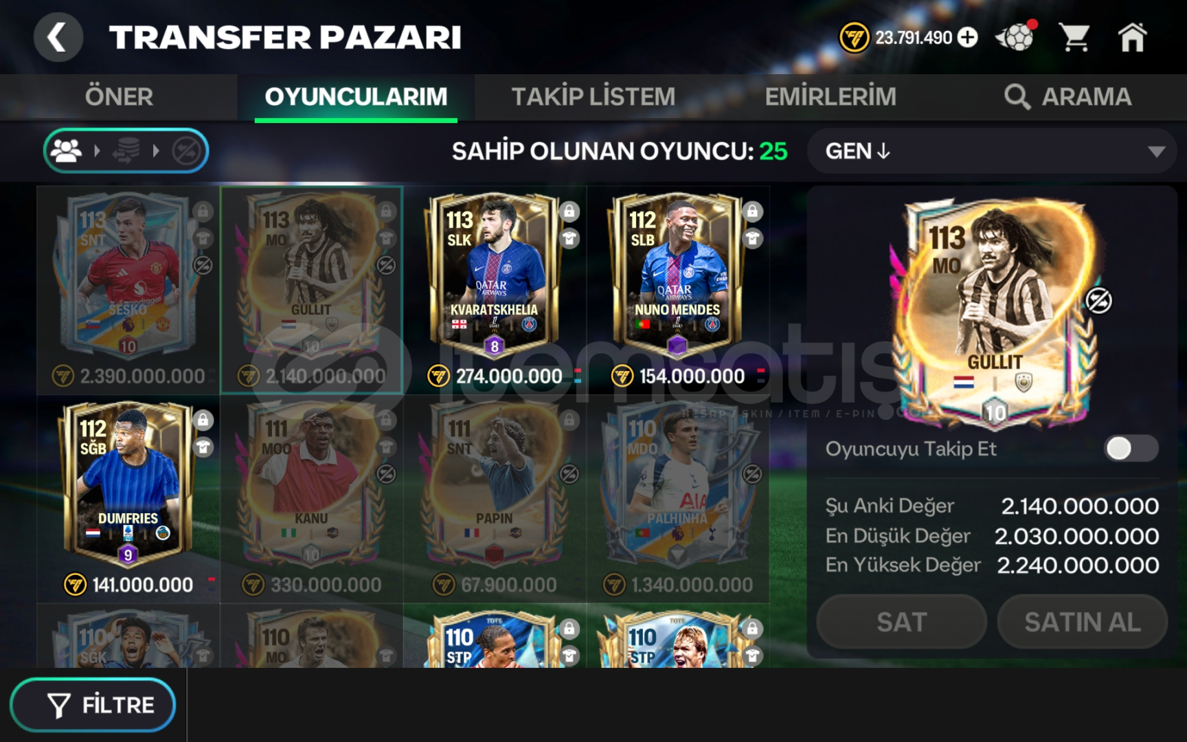 ​💰 Bol Miktarda Coins : Hesapta yüklü miktarda Coins (Oyun İçi Para) bulunmaktadır. Bu coinsler ile transfer pazarında efsanevi oyuncuları alabilir, istediğiniz takımların temellerini anında kurabilir ve hayallerinizdeki kadroyu oluşturabilirsiniz.