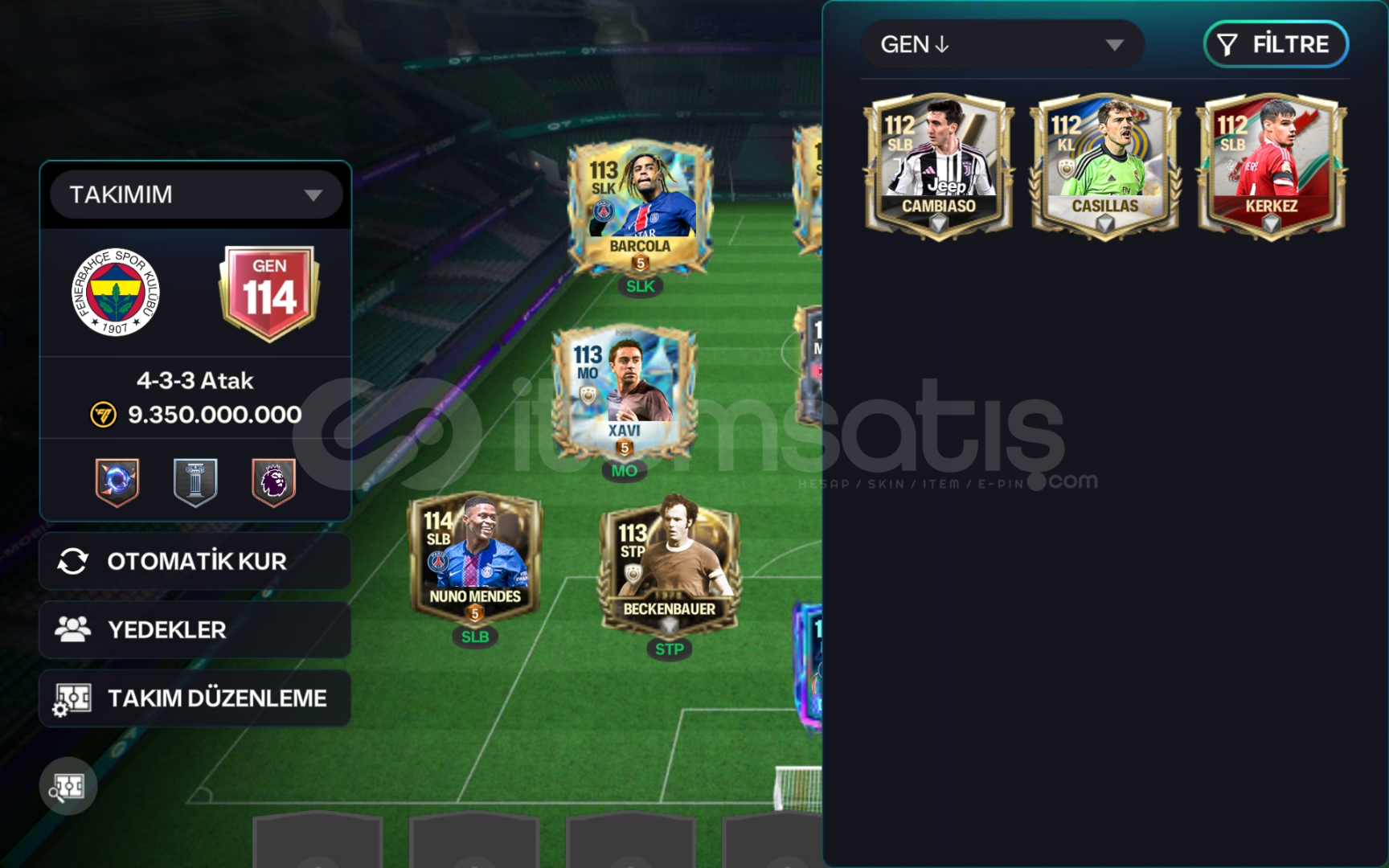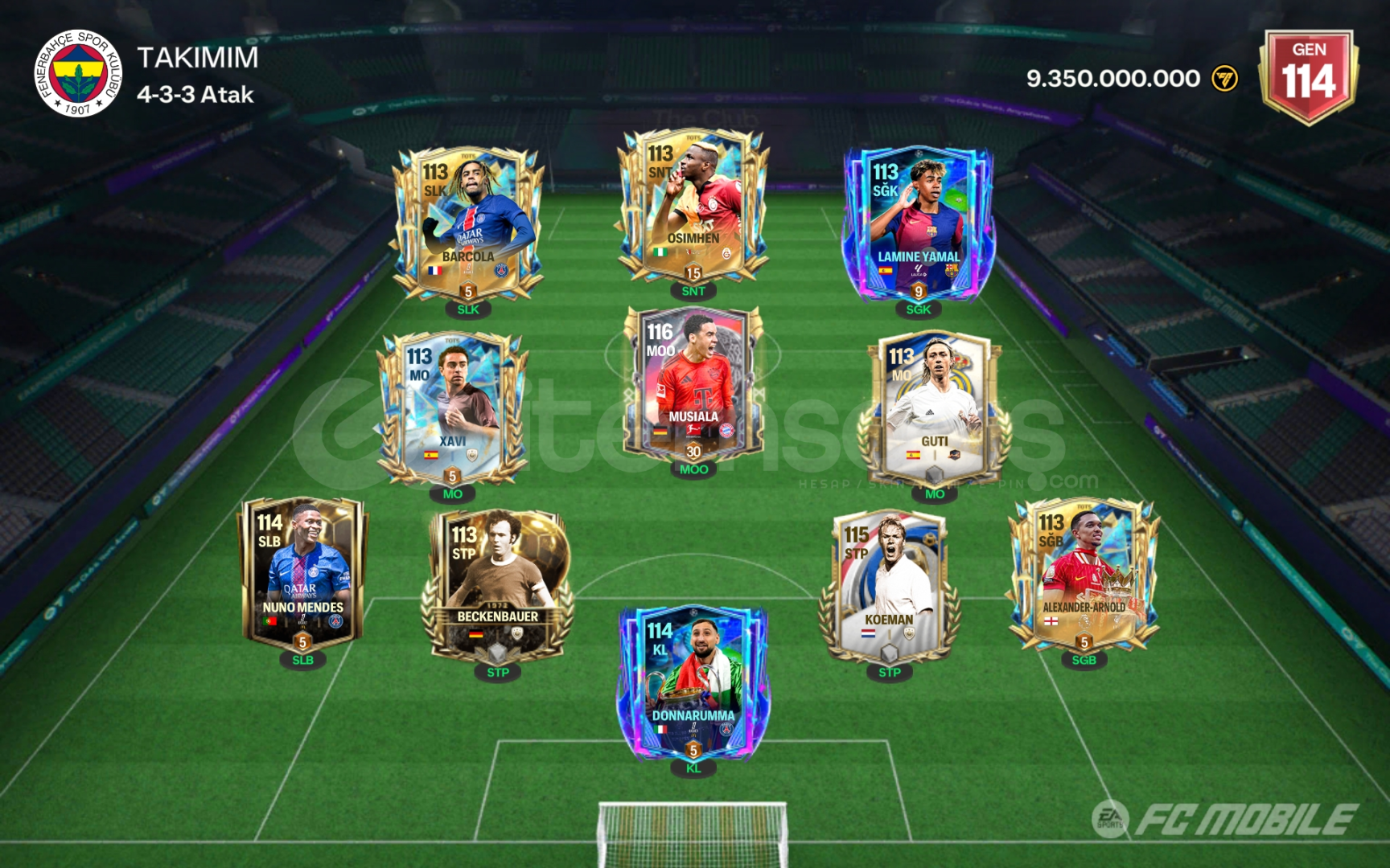 ​🏆 Efsanevi Kadro : Piyasanın özel etkinlik kartlarından oluşan yetenekli ve güçlü oyuncularla kurulu, size her maçta üstünlük sağlayacak, her pozisyonda dengeli bir kadro.
