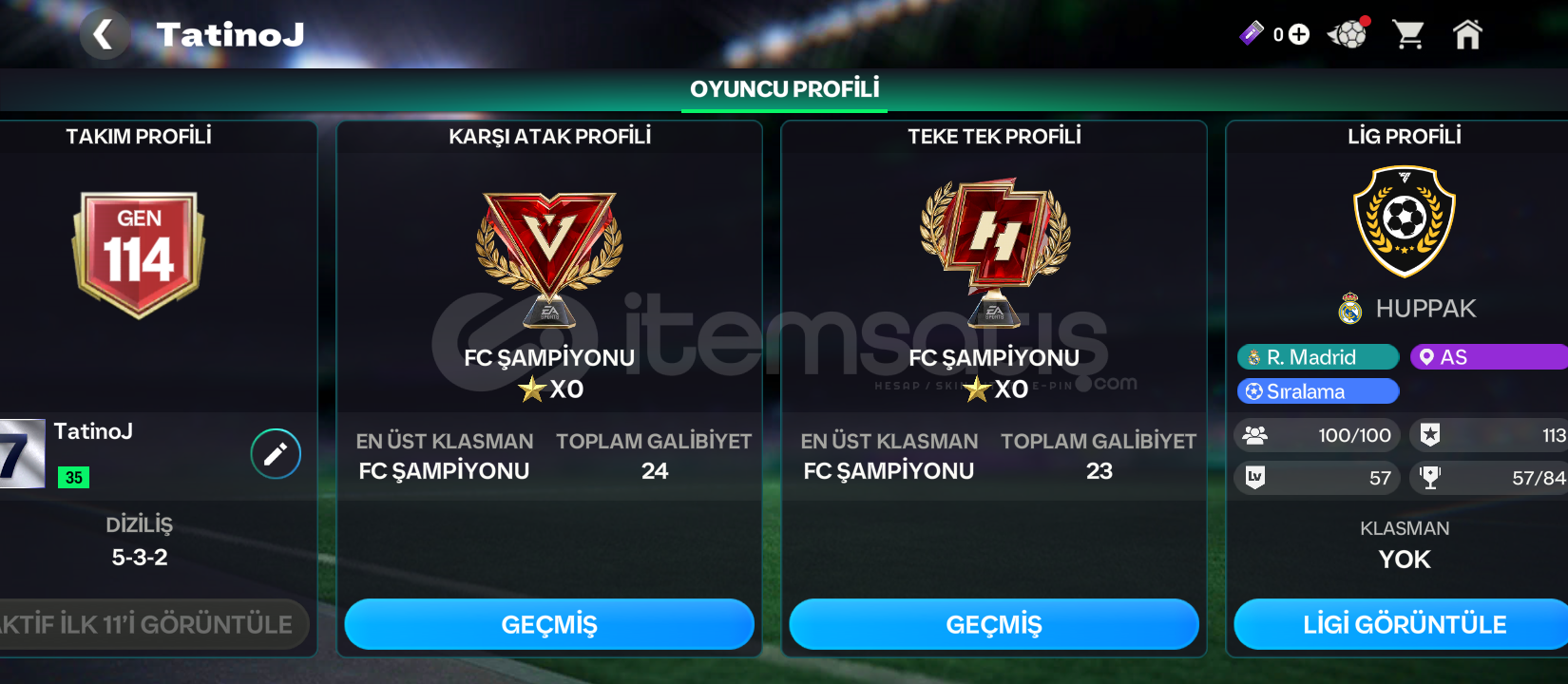 Hesap 114 GEN'dir, -MAİL VERİLECEKTİR TEK BAĞDIR -HESAPTA 3200 HAZIR DERECE YÜKSELTME PUANI VARDIR BUNUNLA BİRLİKTE 19 İZCİLİK KAMPI FİŞİ BULUNMAKTADIR 19*2=3800 TOPLAM 7000 PUAN VARDİR.- Hazır 165M COİNS TOPLAM 1.3 MİLİYAR COİNS BULUNMAKTA-50 PARÇA VE 21 k lig puanı da bulunmakta hesap teke tekte ve karşı atakta FC şampiyonudur - Güven konusunda problem yaşayan ark...