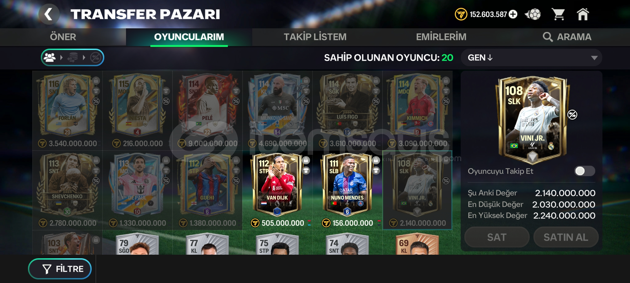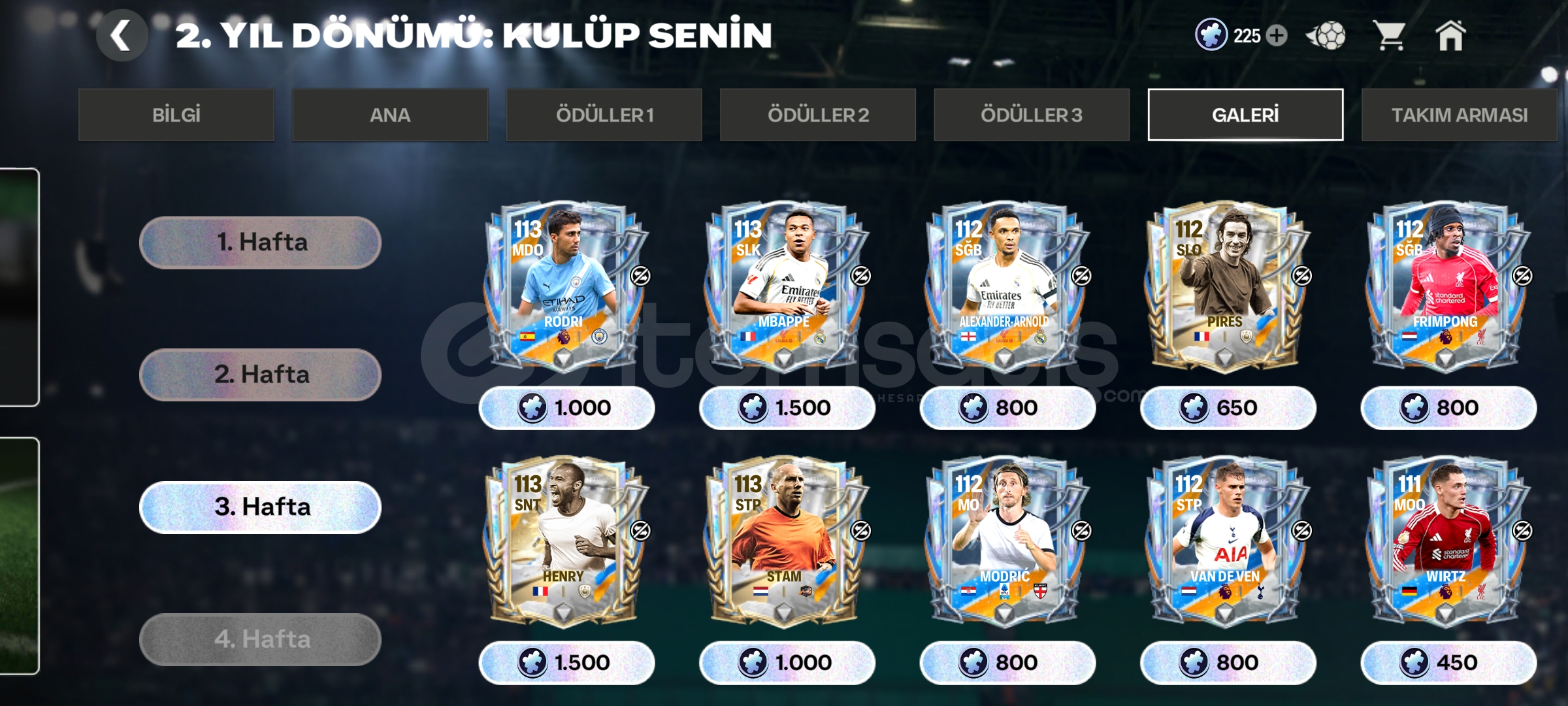 114 gen 2 satılabilir oyuncu mevcut 225 etkinlik parcasi Tek bağ EA