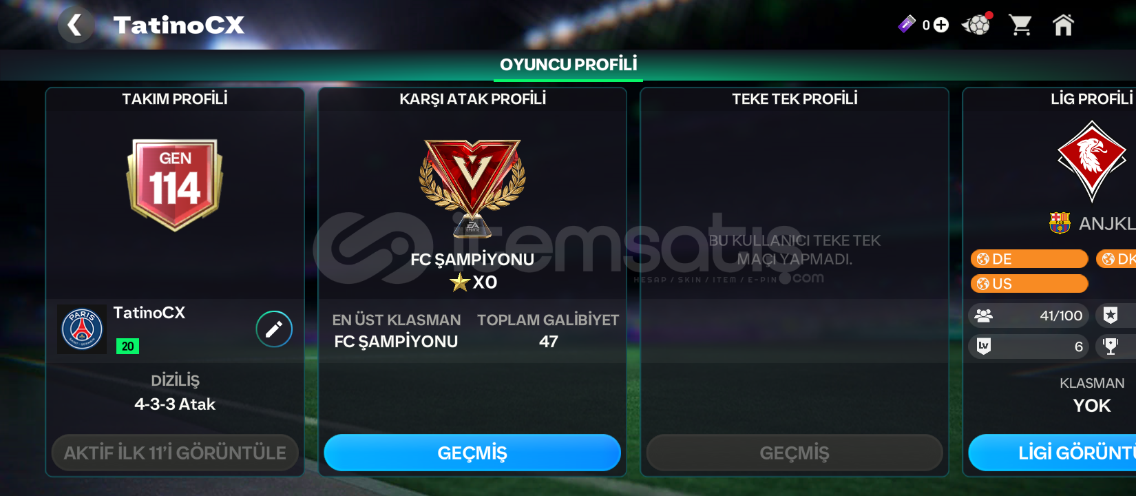 -Hesap 114 GEN olup MAİL KESİNLİKLE TESLİM EDİLECEKTİR.-TEK BAĞDIR.-300M Satılabilir COİNS bulunmaktadır.-40 PARÇA bulunmakta ve hesap teke tekte FC ŞAMPİYONUDUR.-3 İZCİLİK KAMPI BİLETİ VARDIR.- Güven konusunda problem yaşayan arkadaşlar sattığım ilanlara ve DEĞERLENDİRMELERE bakabilirler aklınıza takılan bir soru varsa mesaj atmaktan çeki...