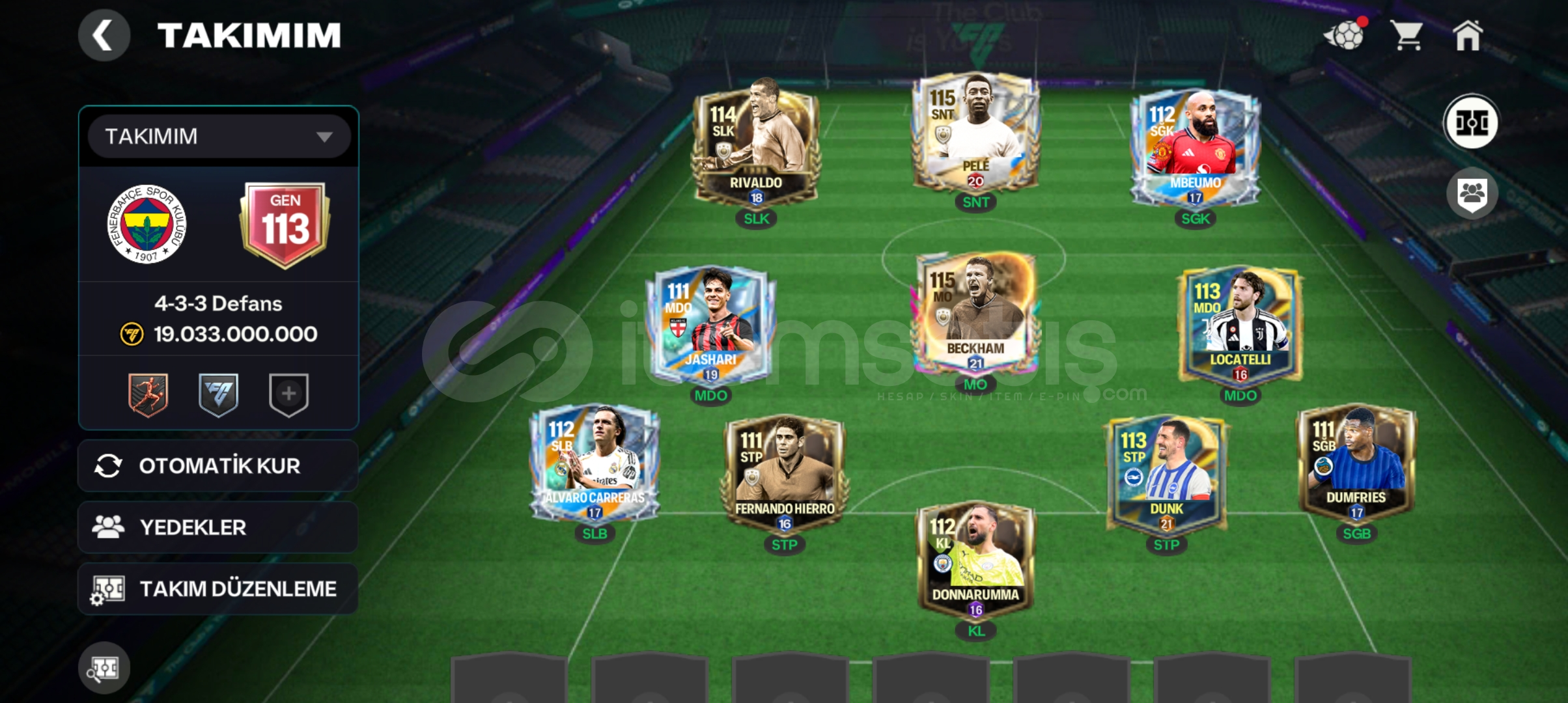 115 Beckham+Pele+Rivaldo gibi oyuncular var fc şampiyon klasmanındadır fiyat ilandakilerle kıyasla klasman farkından dolayı fiyat bu şekilde güncel 114 gen fotoyu üşendim