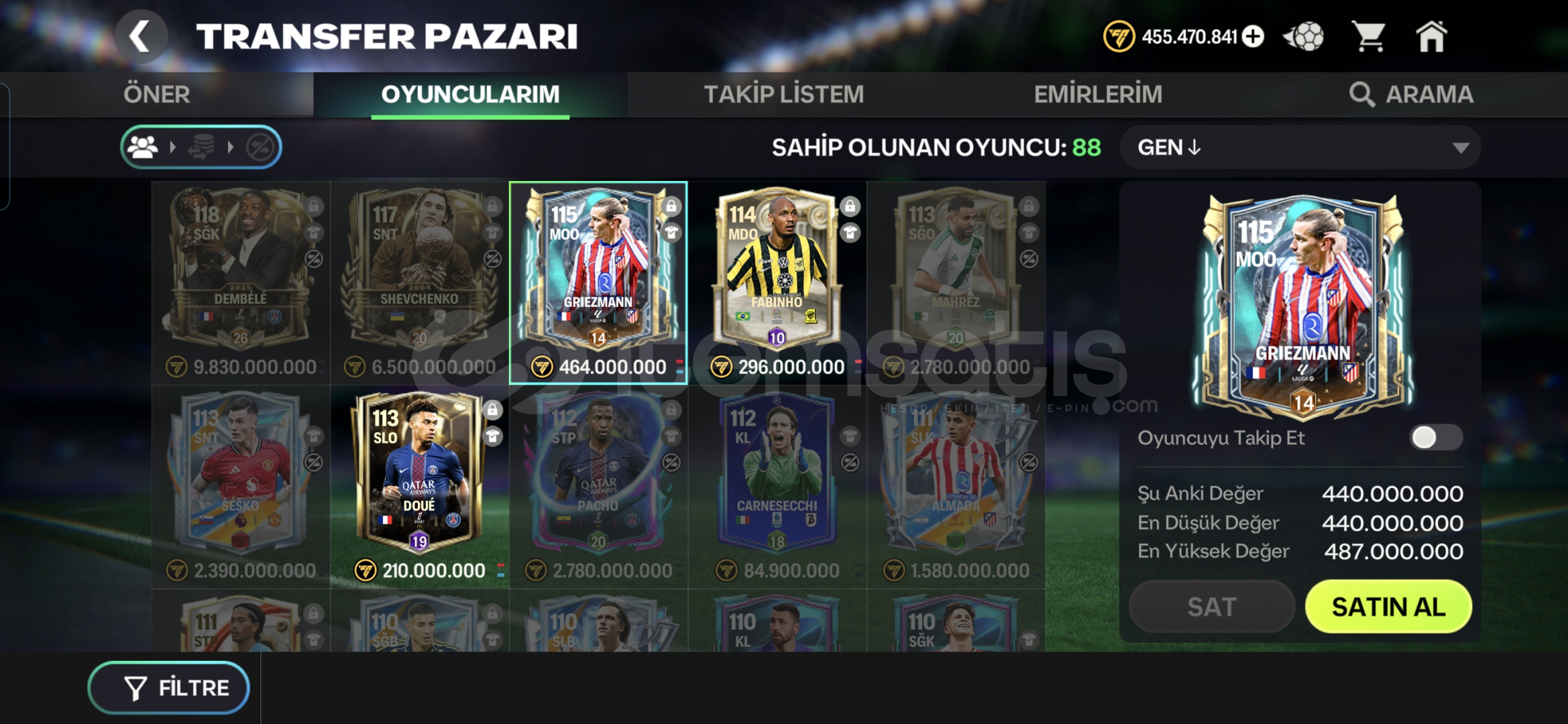 Hesap gelişime açık kadro saglam 7k cevher mevcut satılabilir oyuncular mevcuttur alan kişiye hayırlı olsun