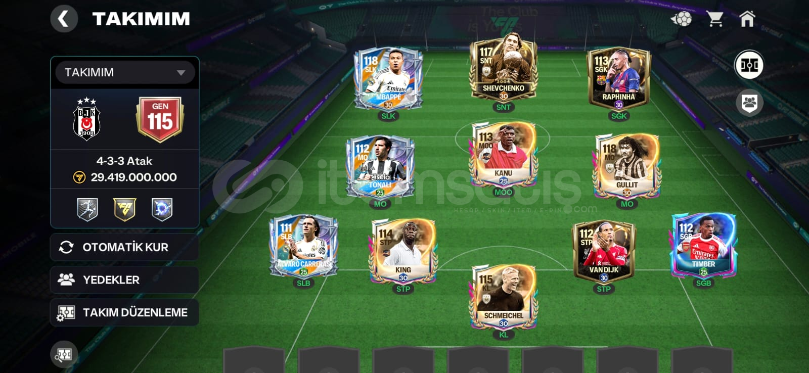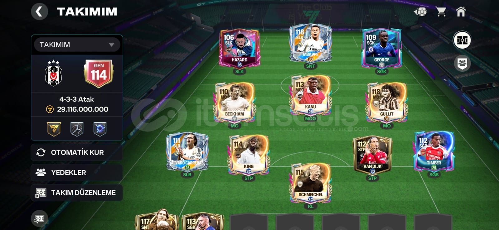 2. Görseldeki Takım etkinlik takımıdır.Ana Takım118 Mbappe (Max)118 Gullıt (Max)117 Shevchenko (Max)115 Schmeıchel (2.lvl)114 Kıng (2.lvl)113 Kanu (2.lvl)113 Raphınha (3.lvl)112 Tonalı (1.lvl)112 Van Dıjk (2.lvl)112 Tımber (2.lvl)111 Alvaro Carreras (1.lvl)