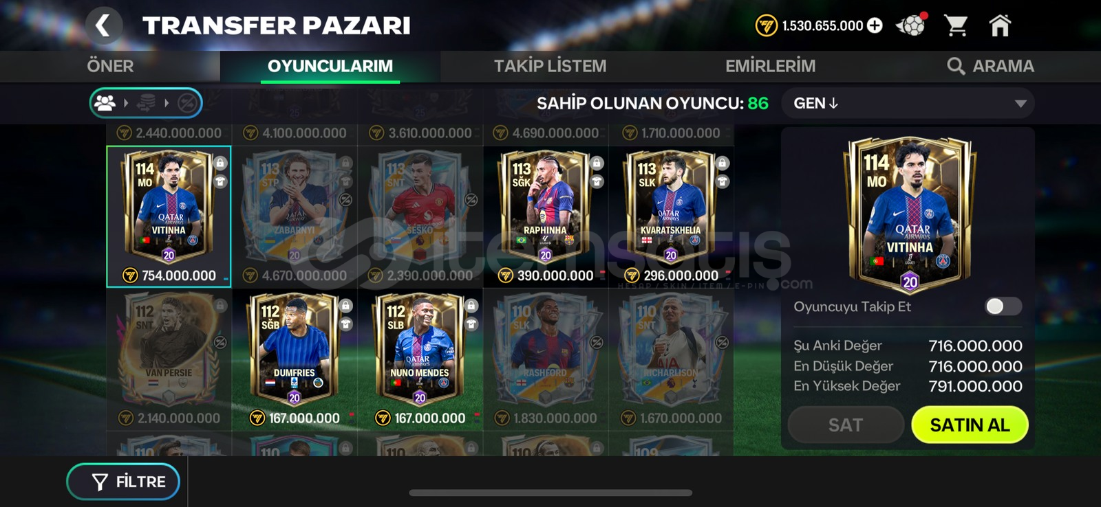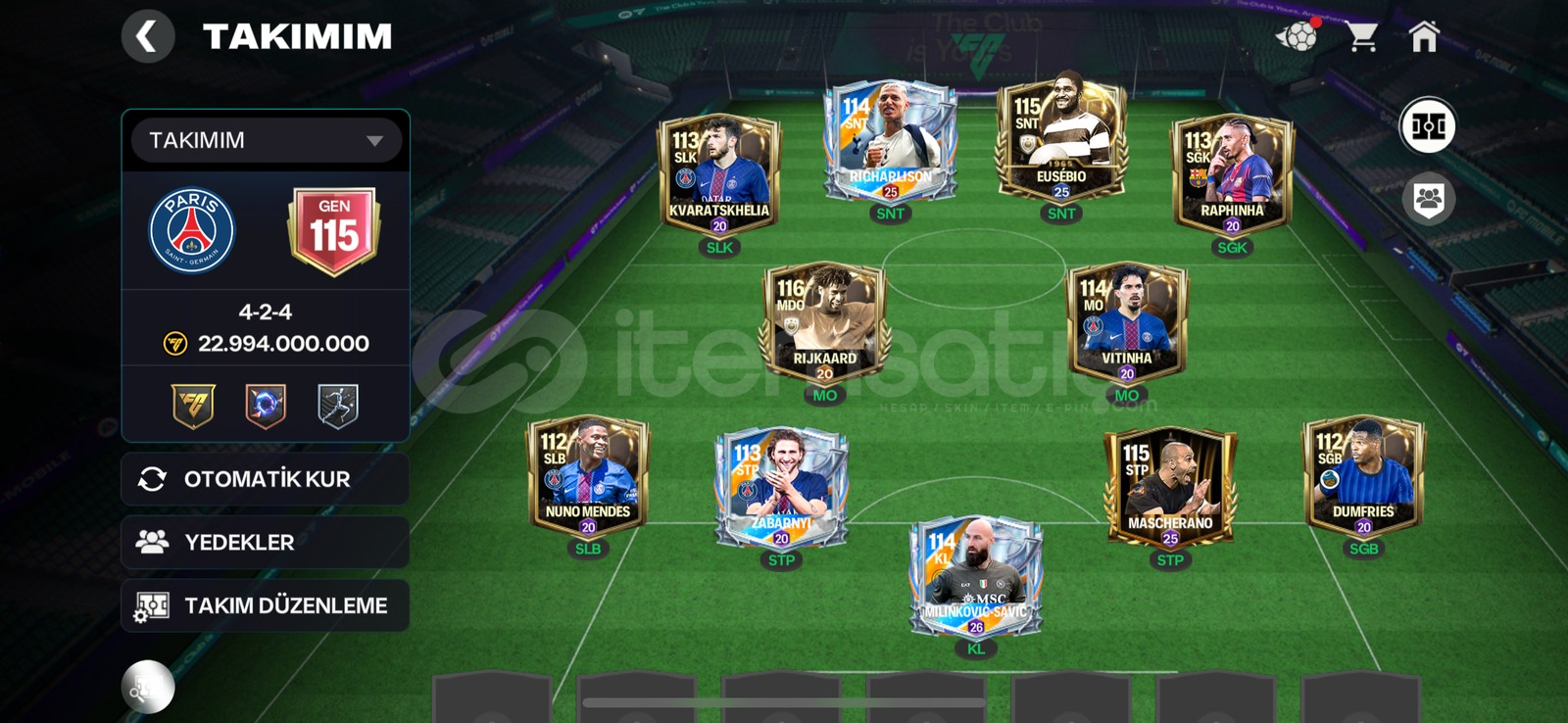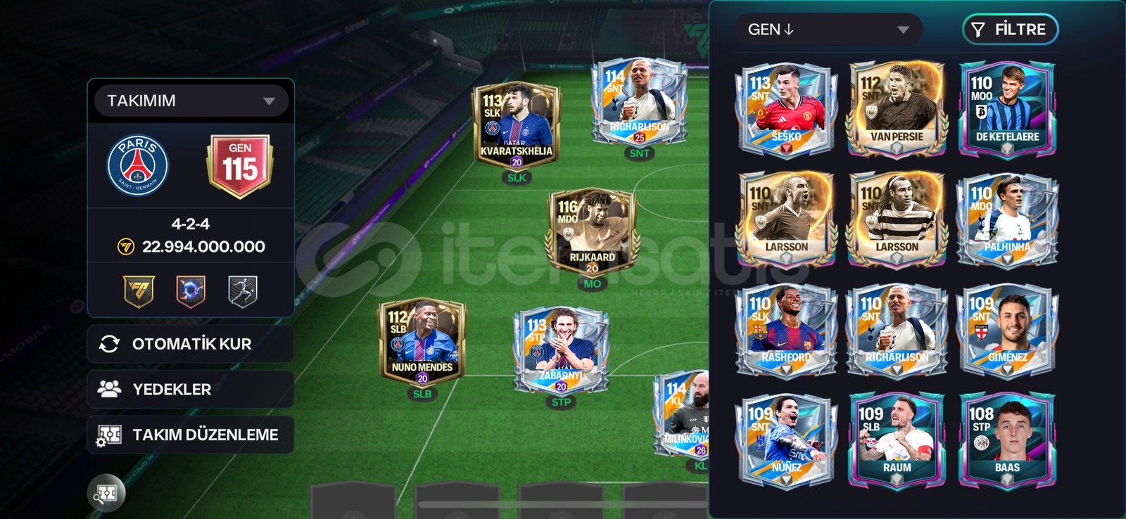 115 gen Fc şampiyonu harika hesap sadece ea bağı var mailiyle birlikte teslim edilecektir hesap tdm ve karşı atakta güncel Fc şampiyonudur 1.5 milyar coins ve bolca oyuncu mevcuttur