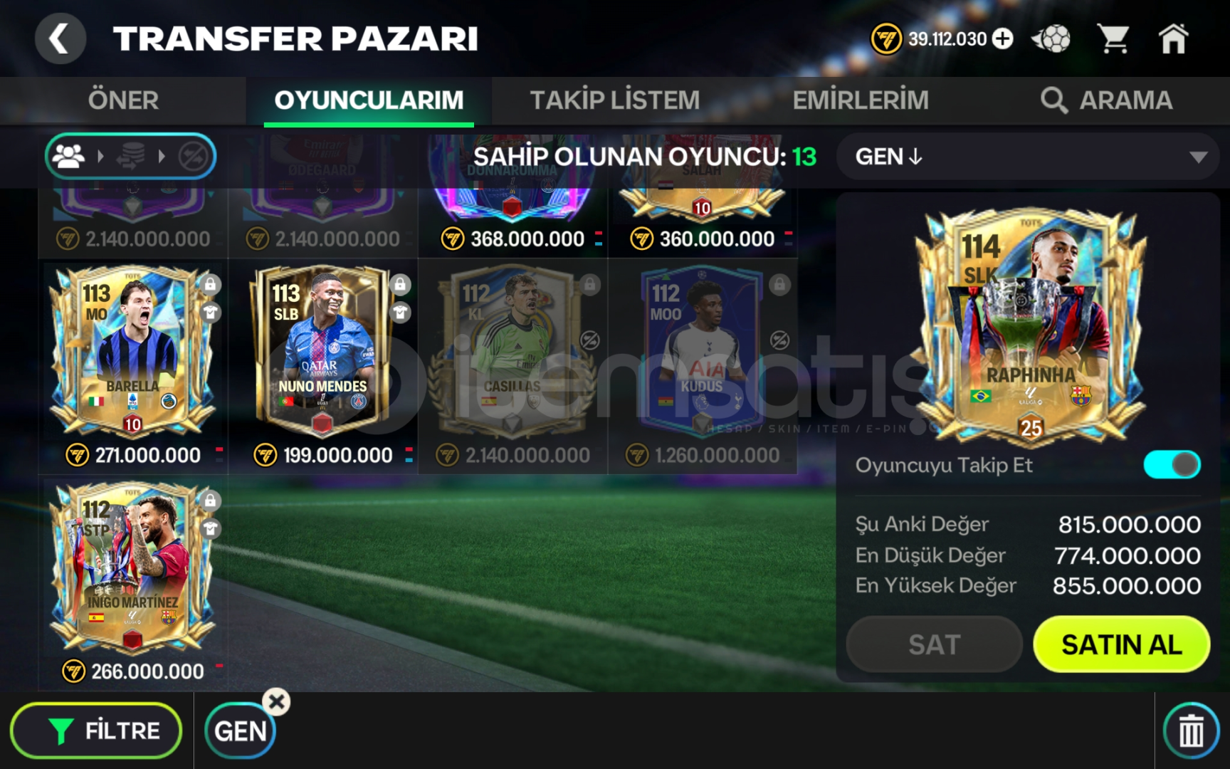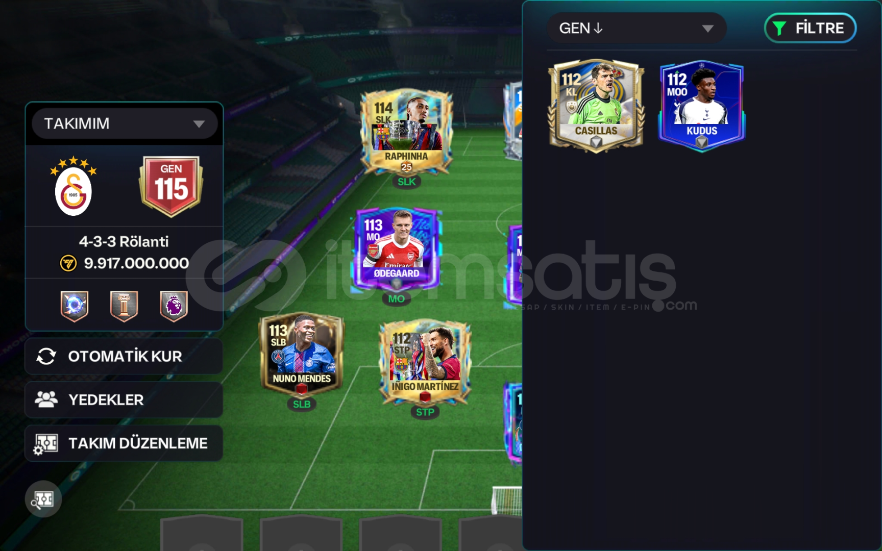 ​🏆 Efsanevi Kadro : Piyasanın özel etkinlik kartlarından oluşan yetenekli ve güçlü oyuncularla kurulu, size her maçta üstünlük sağlayacak, her pozisyonda dengeli bir kadro.