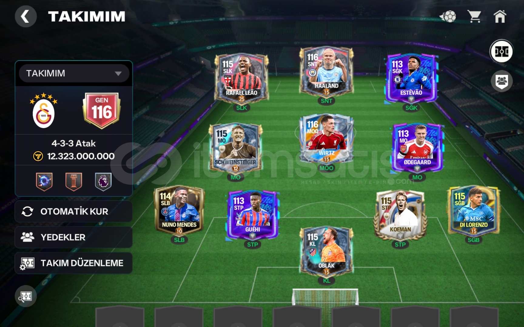​🏆 Efsanevi Kadro : Piyasanın özel etkinlik kartlarından oluşan yetenekli ve güçlü oyuncularla kurulu, size her maçta üstünlük sağlayacak, her pozisyonda dengeli bir kadro.