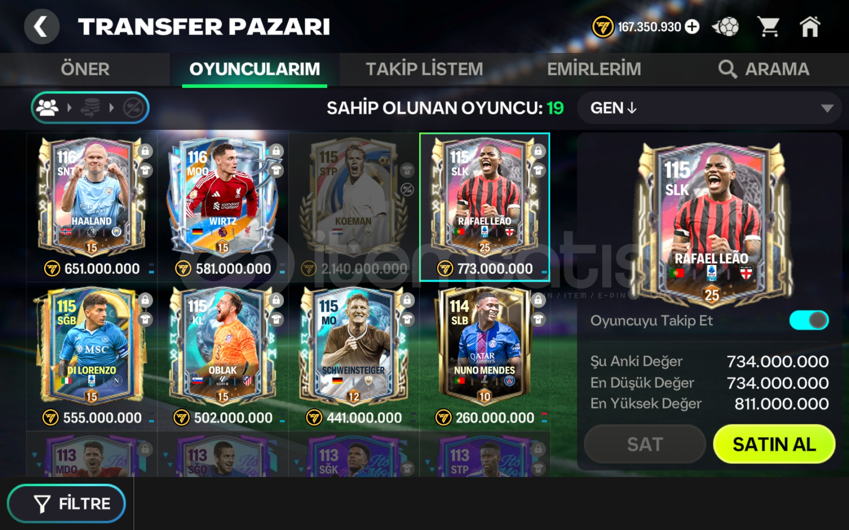 ​💰 Bol Miktarda Coins : Hesapta yüklü miktarda Coins (Oyun İçi Para) bulunmaktadır. Bu coinsler ile transfer pazarında efsanevi oyuncuları alabilir, istediğiniz takımların temellerini anında kurabilir ve hayallerinizdeki kadroyu oluşturabilirsiniz.