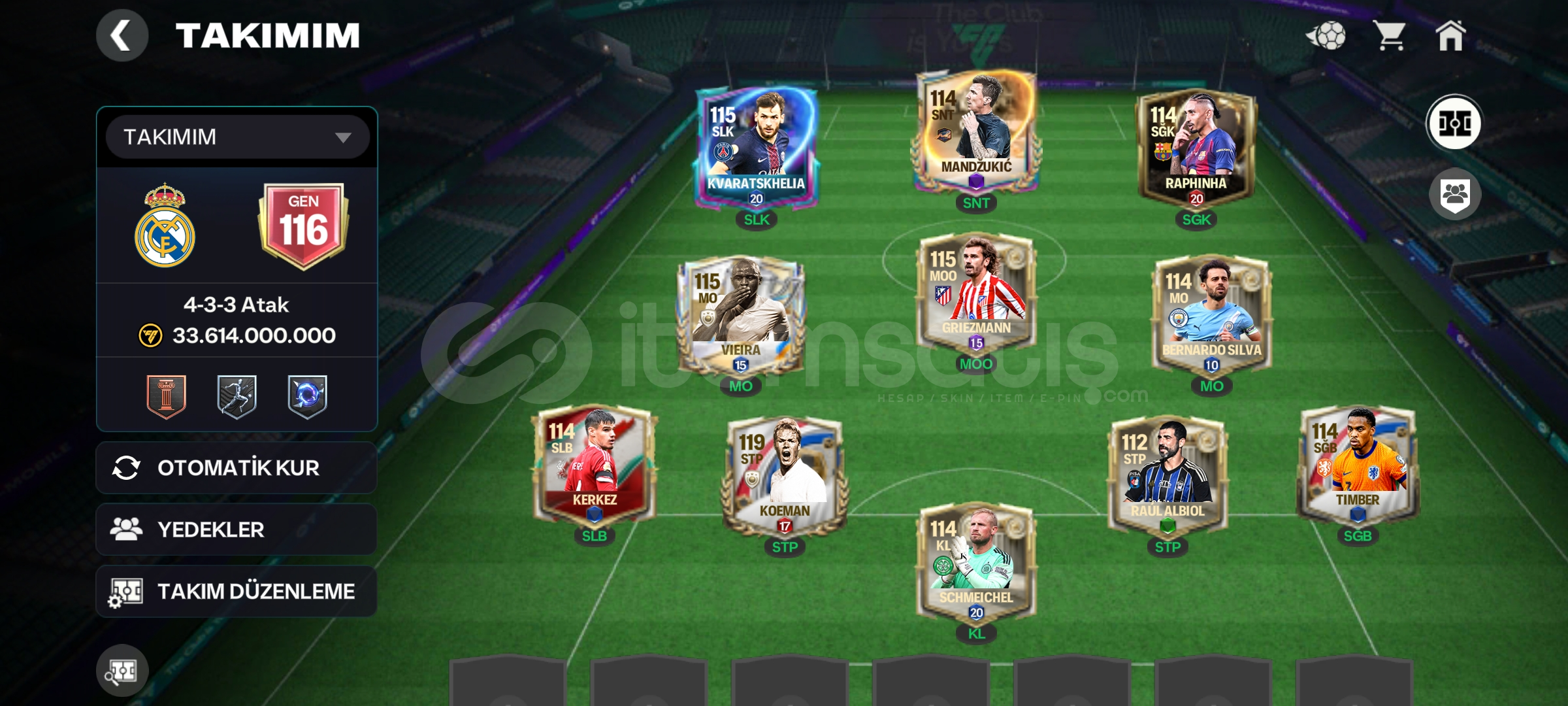 HESAP 116 GEN - GELİŞTİRİLMEYE AÇIKTIRHESABIN SEVİYESİ ( 30-35 ) ARASINDADIROYUNDA BULUNAN GÖREVLER VE MODLARIN BİR KISMI YAPILMAMIŞTIR.DİVİSİON RİVALS MODUNDA İSE AMATÖR KLASMANLARINDADIRÇOK İYİ OYUNCULAR BULUNURSATILABİLİR OYUNCU ( RAPHİNHA - 330M )400M COİNS BULUNMAKTADIRNOT: ALAN KİŞİYE DOĞRUDAN MAİL İLE VERİLECEKTİR &#...