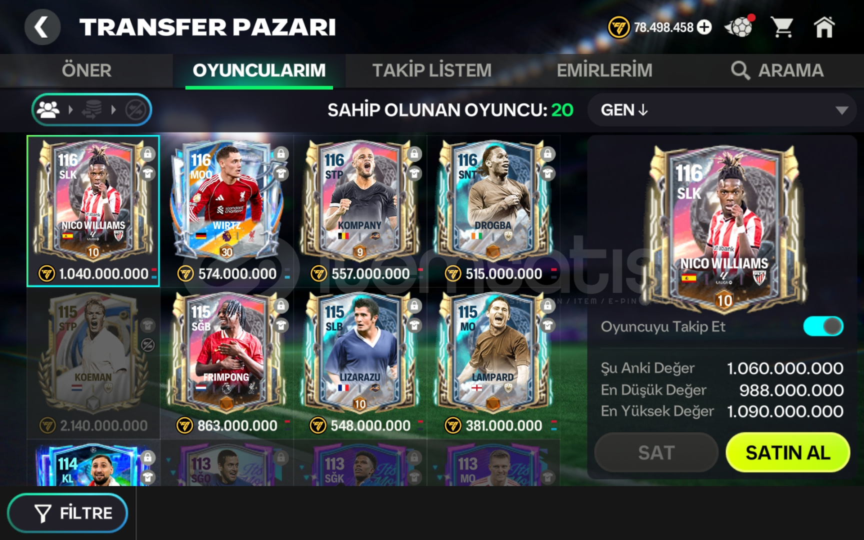 ​🏆 Efsanevi Kadro : Piyasanın özel etkinlik kartlarından oluşan yetenekli ve güçlü oyuncularla kurulu, size her maçta üstünlük sağlayacak, her pozisyonda dengeli bir kadro.