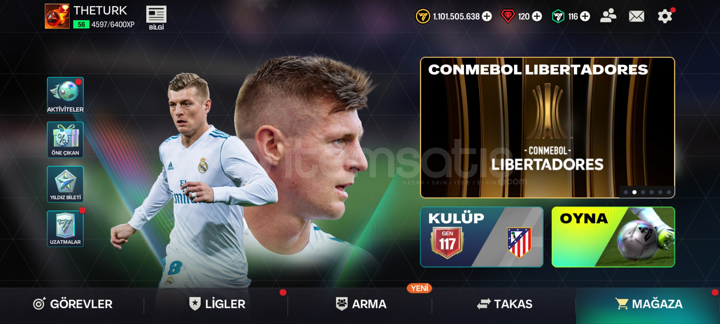 117 GEN HESAP 118 GENE AZ KALDİ. SATİLABİLİR 3 OYUNCUYLA TOPLAM KASANİZ 11 MİLYARİ GECER. GOREVLER YAPİLDİ OYNA BOLUMUNDE TD SAMPİYON KARSİ ATAK SAPİYON 20 TD SAMPİYONDUR. LİG BİTTİJTEN SONRA EFSANE MUCEVHER VE BİRCOK ODUL ALİR HESAP.