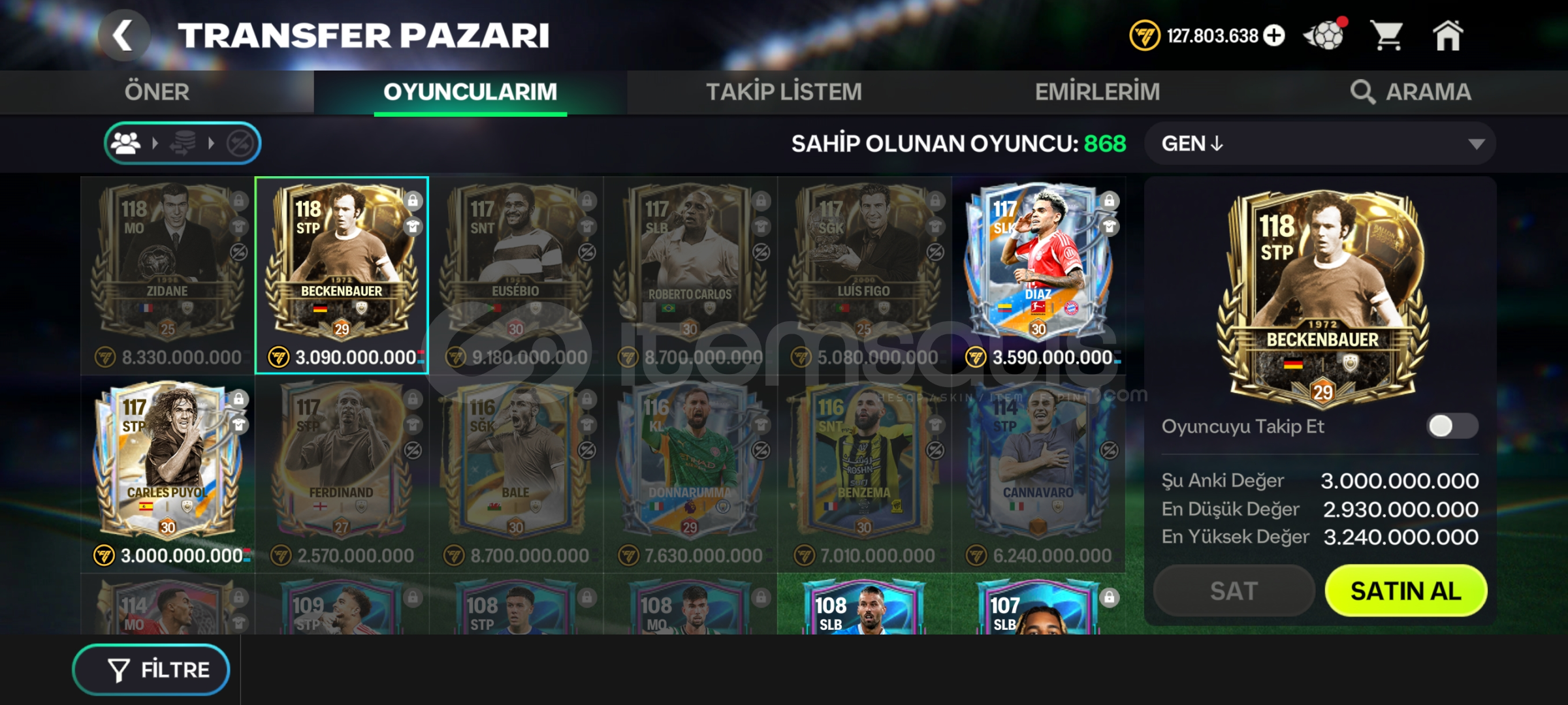 HESAP SAHSİ KULLANDİM HESAPTİR EA BAGLİLİGİ VAR SADECE MAİLLE BERABER VERİLECEKTİR. 55 K LİG FİSİ 40K ANTREMAN AKTARİMİ MEVCUT. 3 SATİLABİLİR OYUNCUYLA 10.000.000.000 FC POİNT KAZANİLİR. PAZARLİK PAYİ VARDİR.