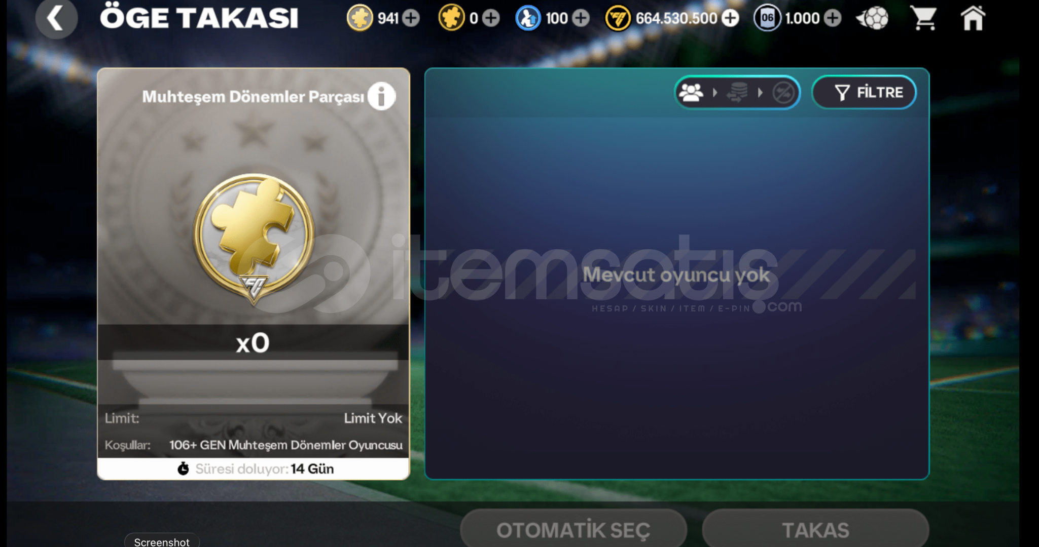 BOŞTA 664 MİLYON COINS--600 ULUS PARÇASI--941 MUHTEŞEM DÖNEMLER PARÇASI--
