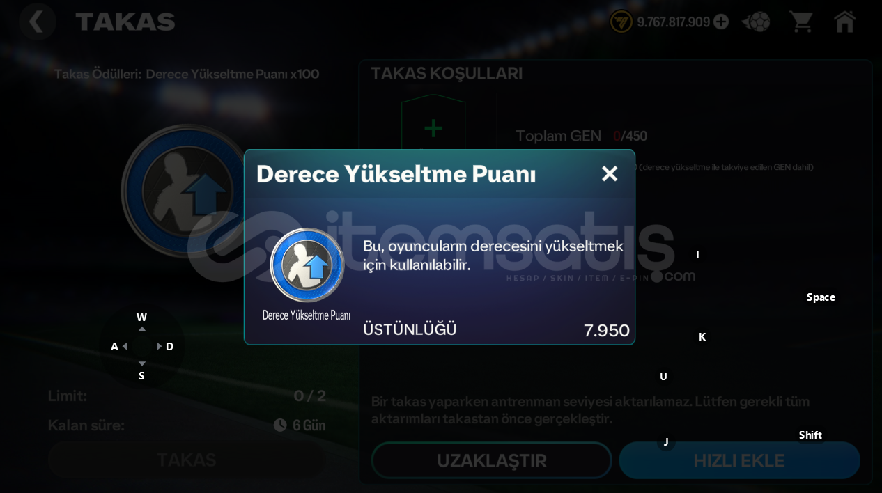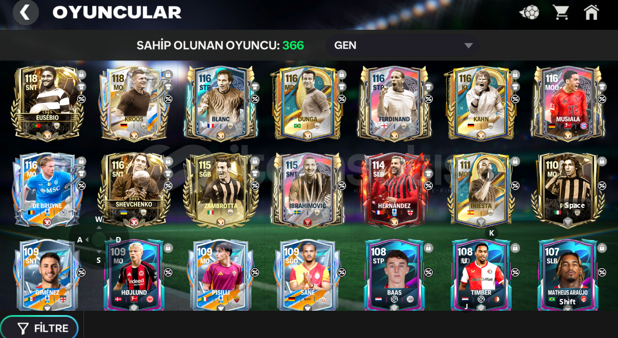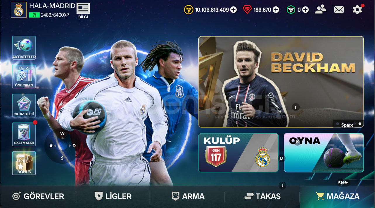 hesap 117 gendir hesapta 10 milyar coins 180 binden fazla cevher bulunmaktadır 8 bin derece yükseltme puanı ve 50bin antrenman aktarım puanı ve 60 bin lig fişi bulunmaktadır