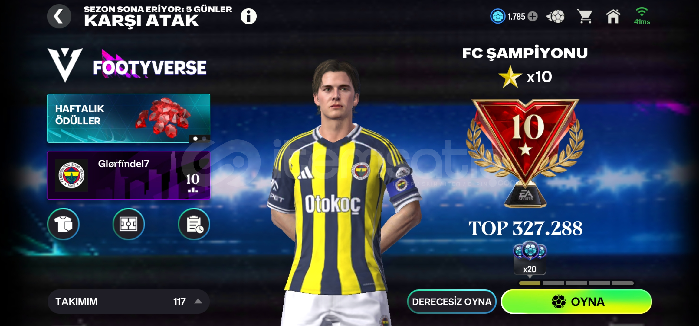 -117 Gen FC Şampiyonu, Teke tek şampiyonu görüldüğü gibi sıralamada -63 Milyon kadro değeri, 4 ikon kart mevcut, değerli kadro-16.215 cevher mevcut, her hafta ligden 9.000 cevher gelmektedir.-Lig fişi fotoğrafta görüldüğü gibi gelecektir.-Hesap facebook ile bağlıdır, temiz facebook hesabı alan kişiye şifre ile teslim edilecektir, aldıktan sonra telefon numaranızı...