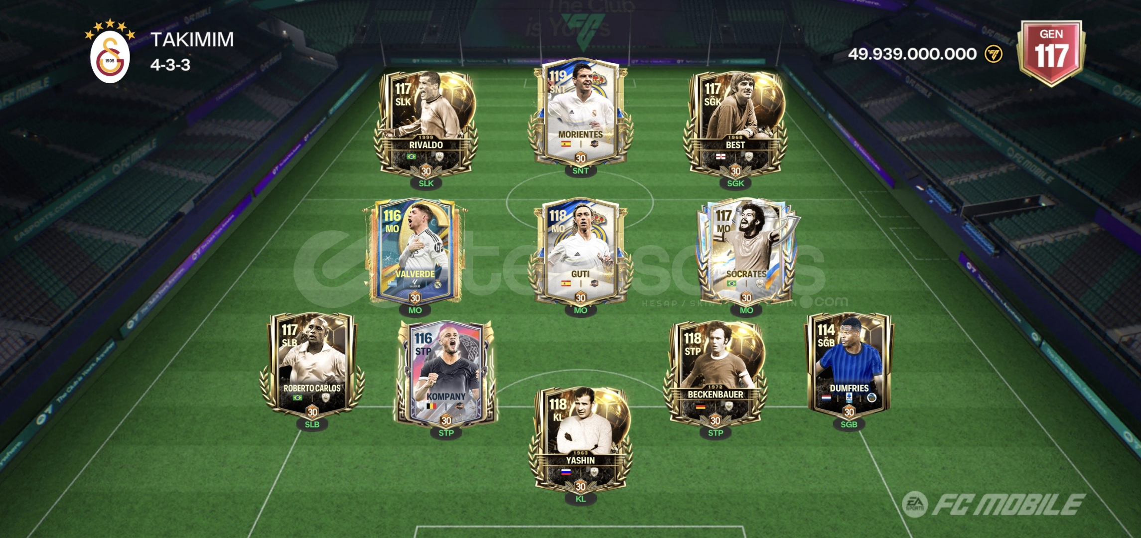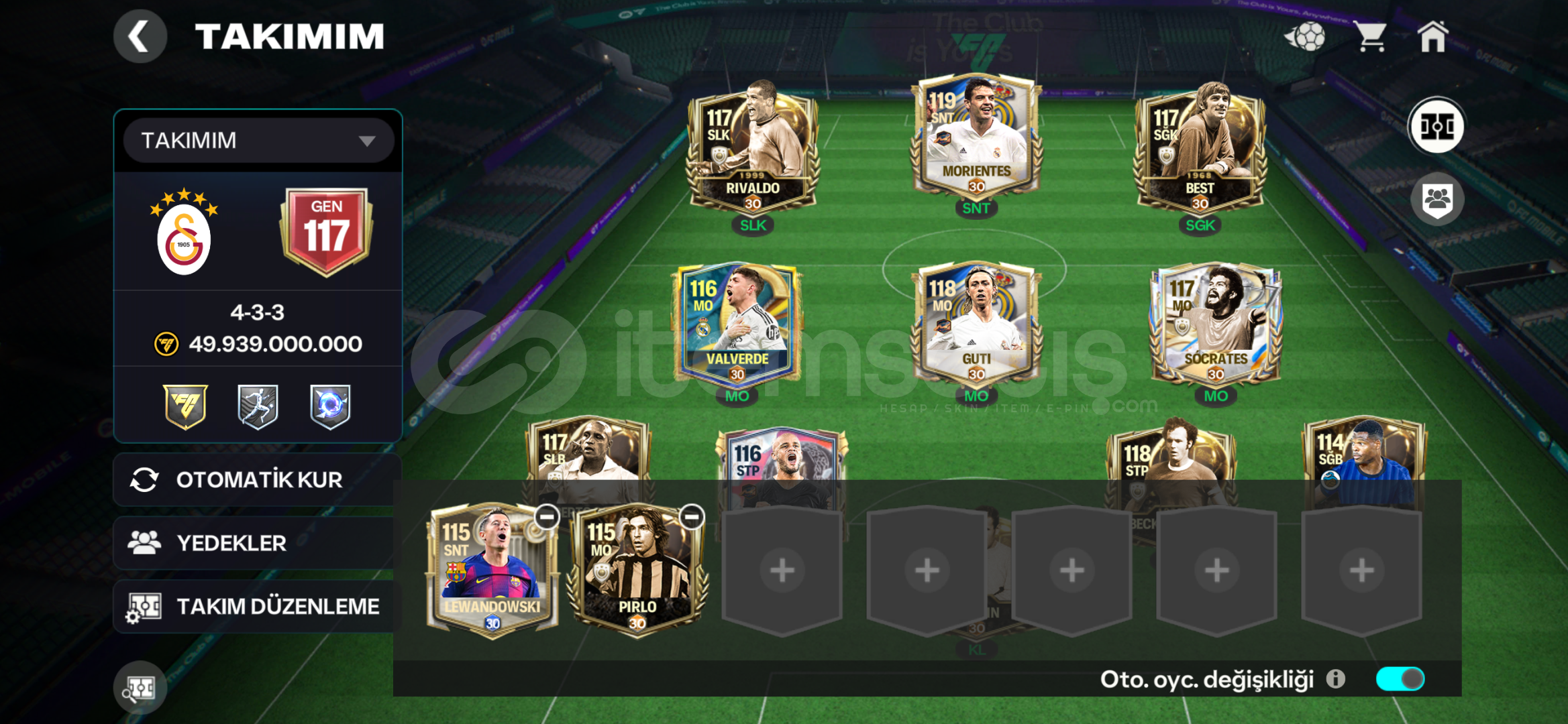 117 Gen 51 Level 50 Milyar kadro değerı.4+ Milyar satılabilirli.Full Antrenmanlı Full levelli.