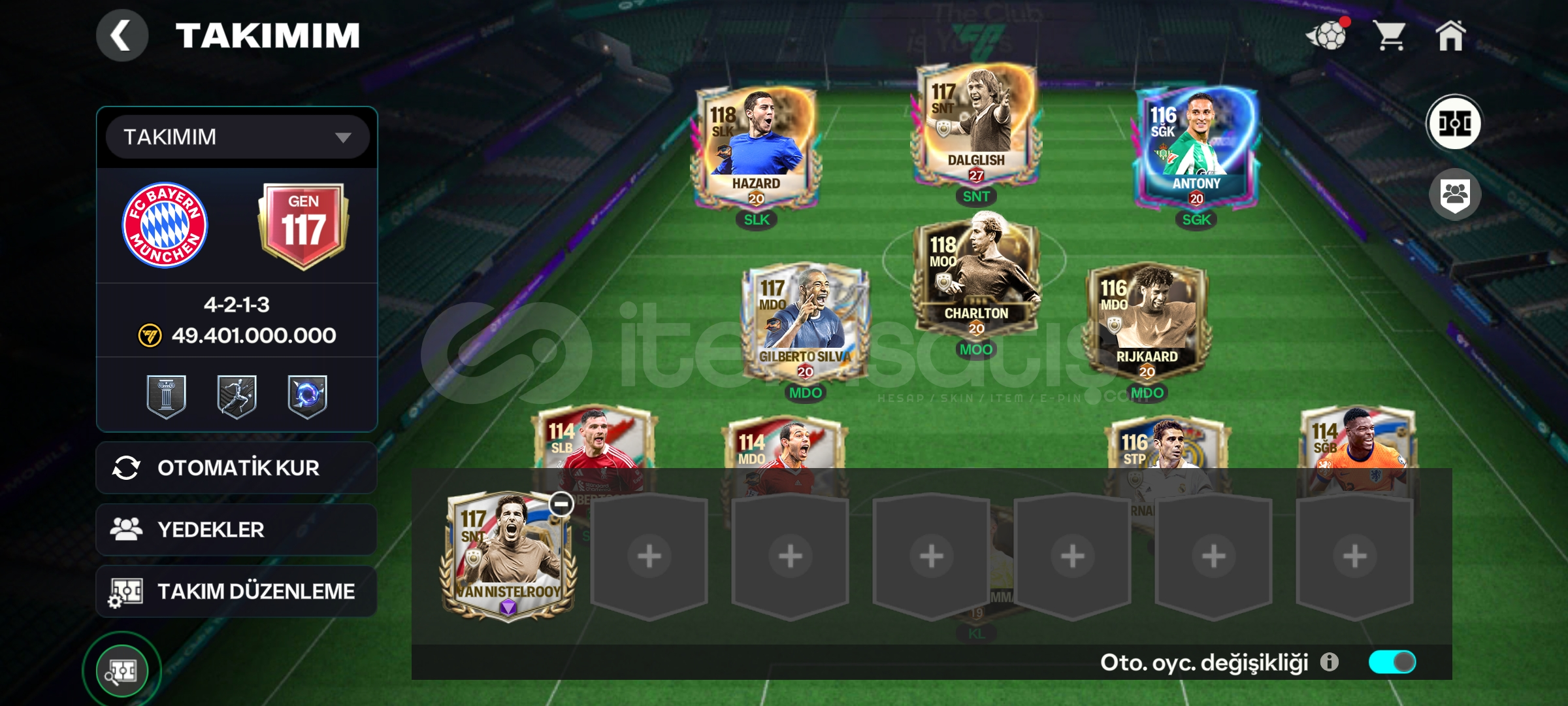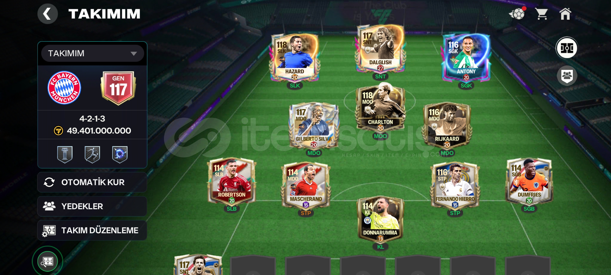 Tek bağ ea 117 gen kaleci değişirse 118 oluyor derece fişi gerekli sadece hesaba 21 tane kamp fişi var sadece karşı atak ilerledim diğer division kısımlarından 2000 derece fişi gelecek çok rahat bu oyuncularla temel gen 119 olur satılır 2.2 milyar oyuncu var. Çok uyguna koyuyorum alıcısına hayırlı olsun.