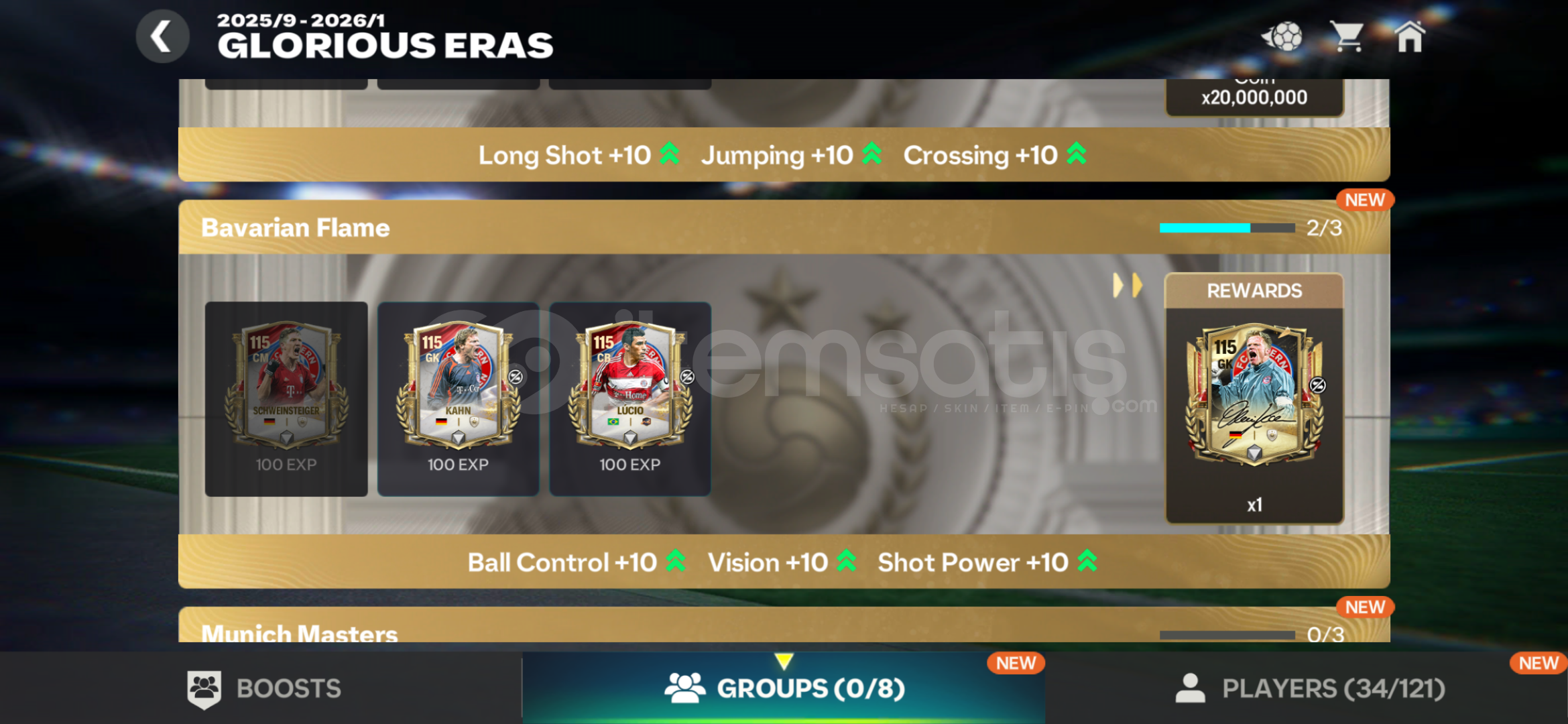 3 MİLYAR COINS EDERİ VAR--BOŞTA 696 ETKİNLİK PARÇASI VAR--35K CEVHER--İMZALI KAHN İÇİN 1.5 MİLYAR DAHA KASIP SCHWEINSTEIGER ALABİLİRSİNİZ SONRA İMZALI KAHN AÇILACAK--118 OLMASINA AZ KALDI--