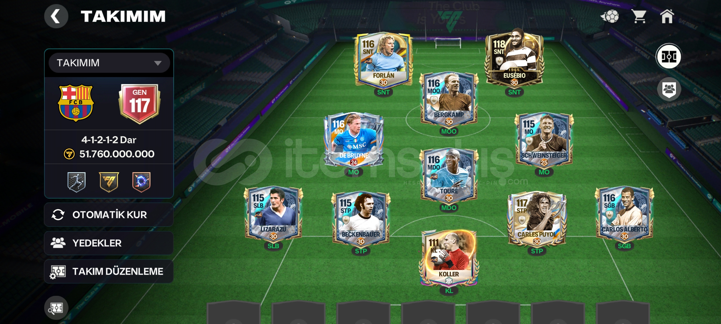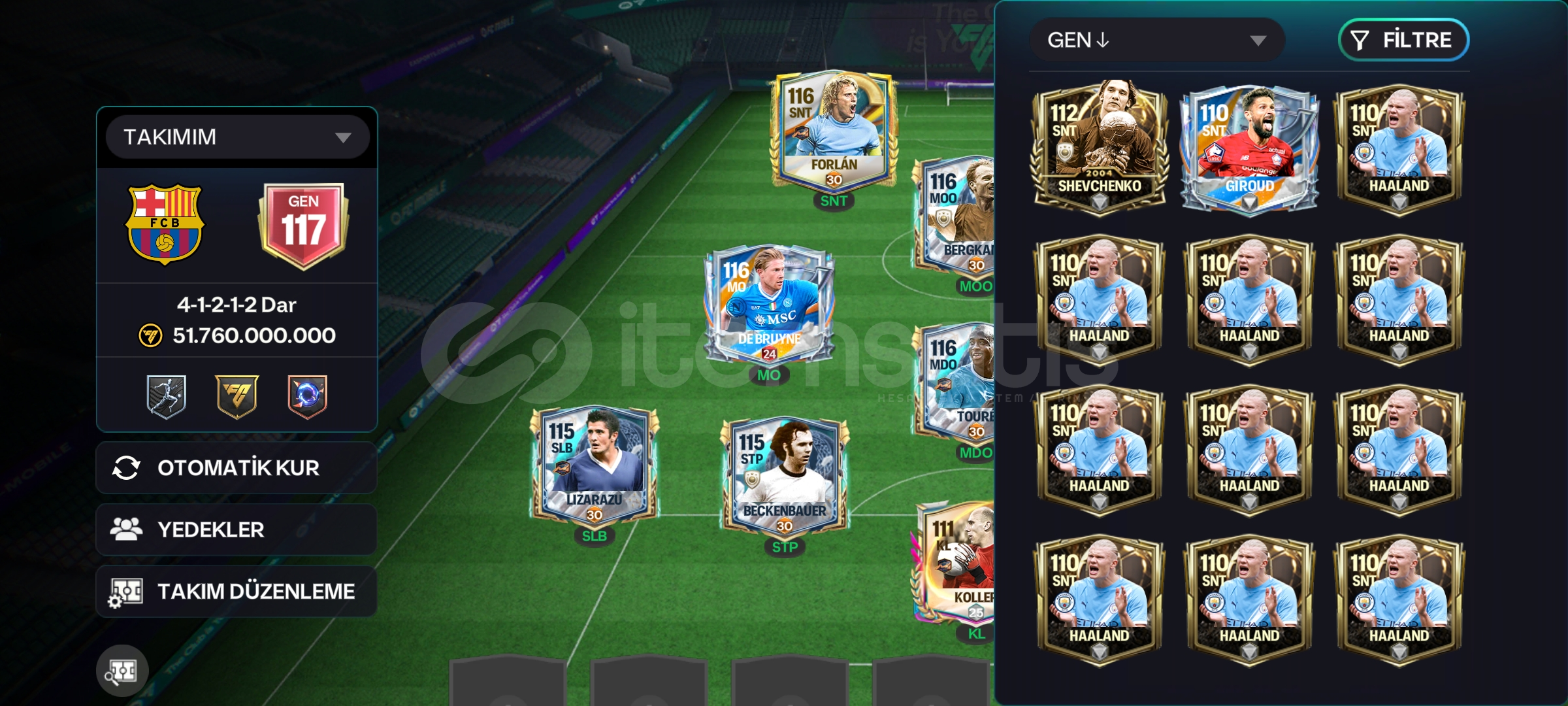 117GEN.TEK BAĞ.4 MİLYAR SATILABİLİR OYUNCU.500 MİLYON KASA.İSİM DEĞİŞTİRME BİLETİ.415 ETKİNLİK PUANİ.20 BİLET. 3100 DERECE ARTTIRMA PUANI.
