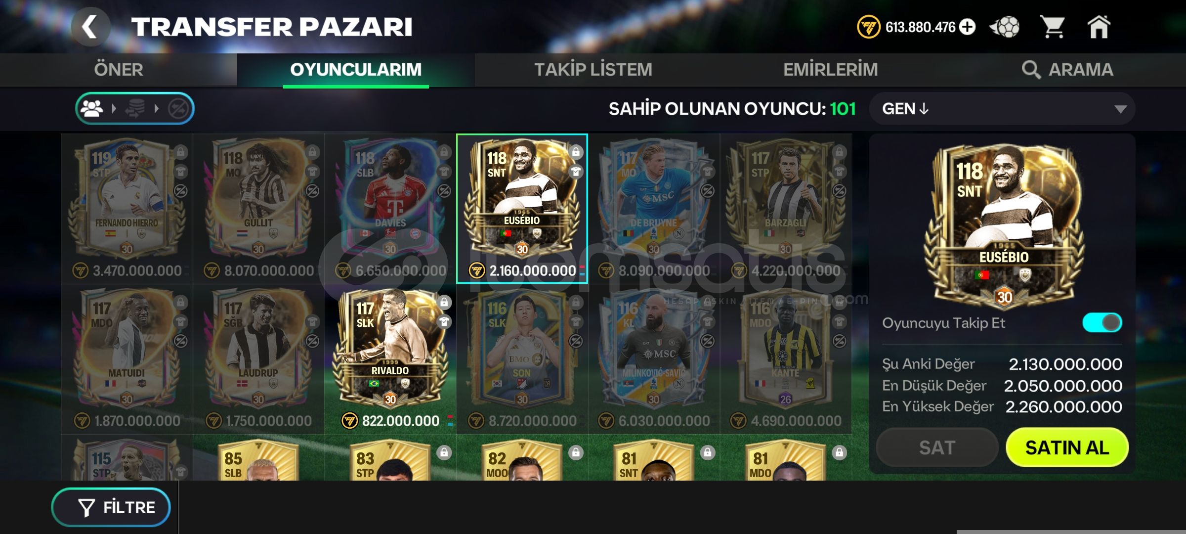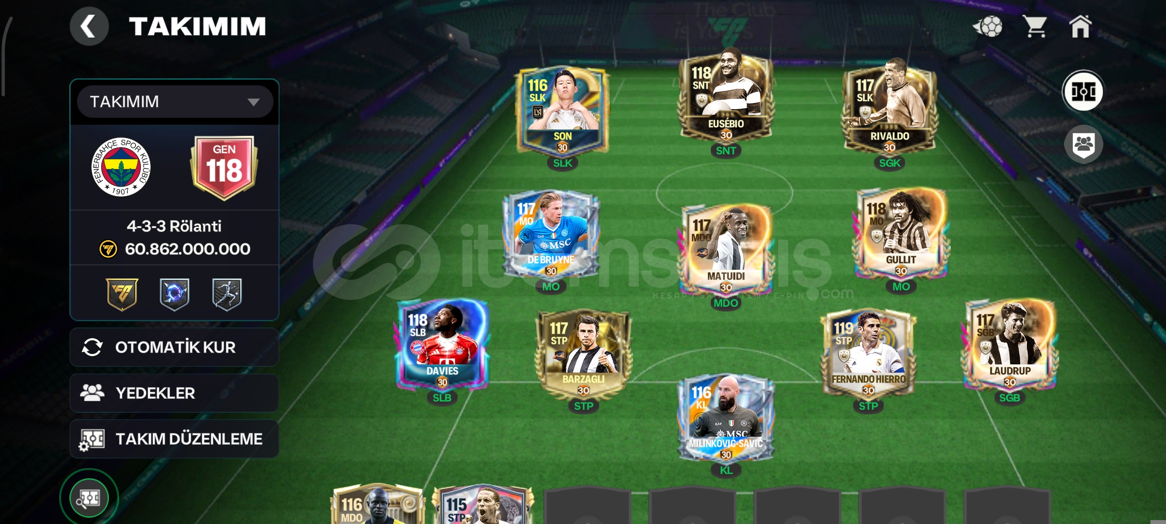118 gen hesap 600 milyon coins 2 satılabilir360 parça Her kulvarda fifa şampiyonu tt ve Ka da 10 yıldız.Hesap 2 yükseltmeye 119 olacak.