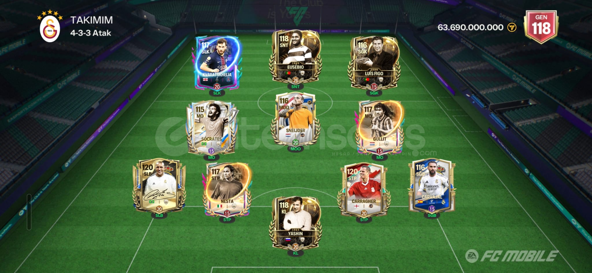 118 GEN, 120 GEN imzalı Carlos ve daha birçok özel oyuncu hesabımızda mevcuttur.Hesap tek bağdır ve kayıtl...