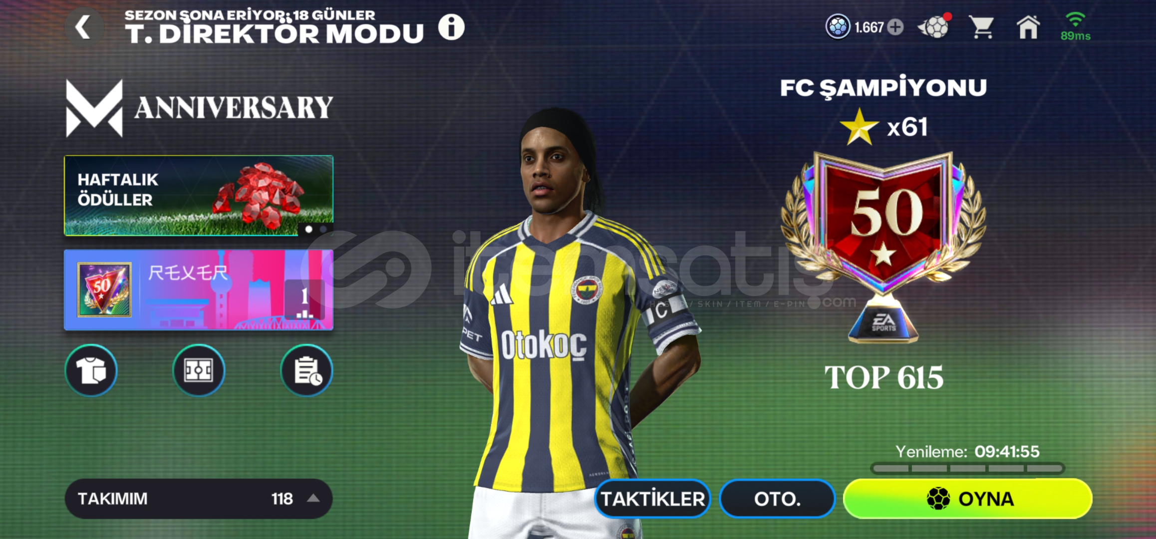Hesabım 118 gen ful+fuldür100 kişilik Türk aktif dünya sıralaması klandadır.Division rivalsta ka +50 td +60 kasıldıArma 2. seviye 925 puandır1500 parçaya Lucio aldım ekstra 840 parça varYaklaşık 9mr satılabilir coins varTek bağ EA dir herhangi bir sorun yaşamazsınız..