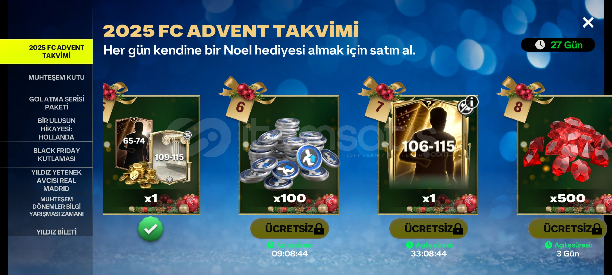 118 Gen.Satılabilir 2 Oyuncu.350 etkinlik puanı.2025 Takvimi Satın alinmis,hergün bir hediye gelecek.
