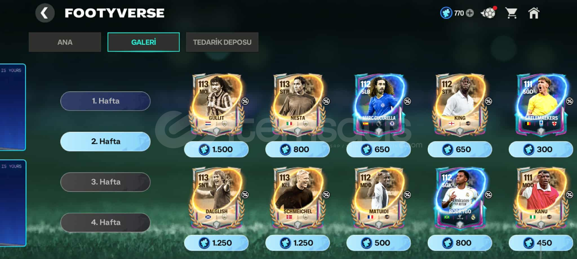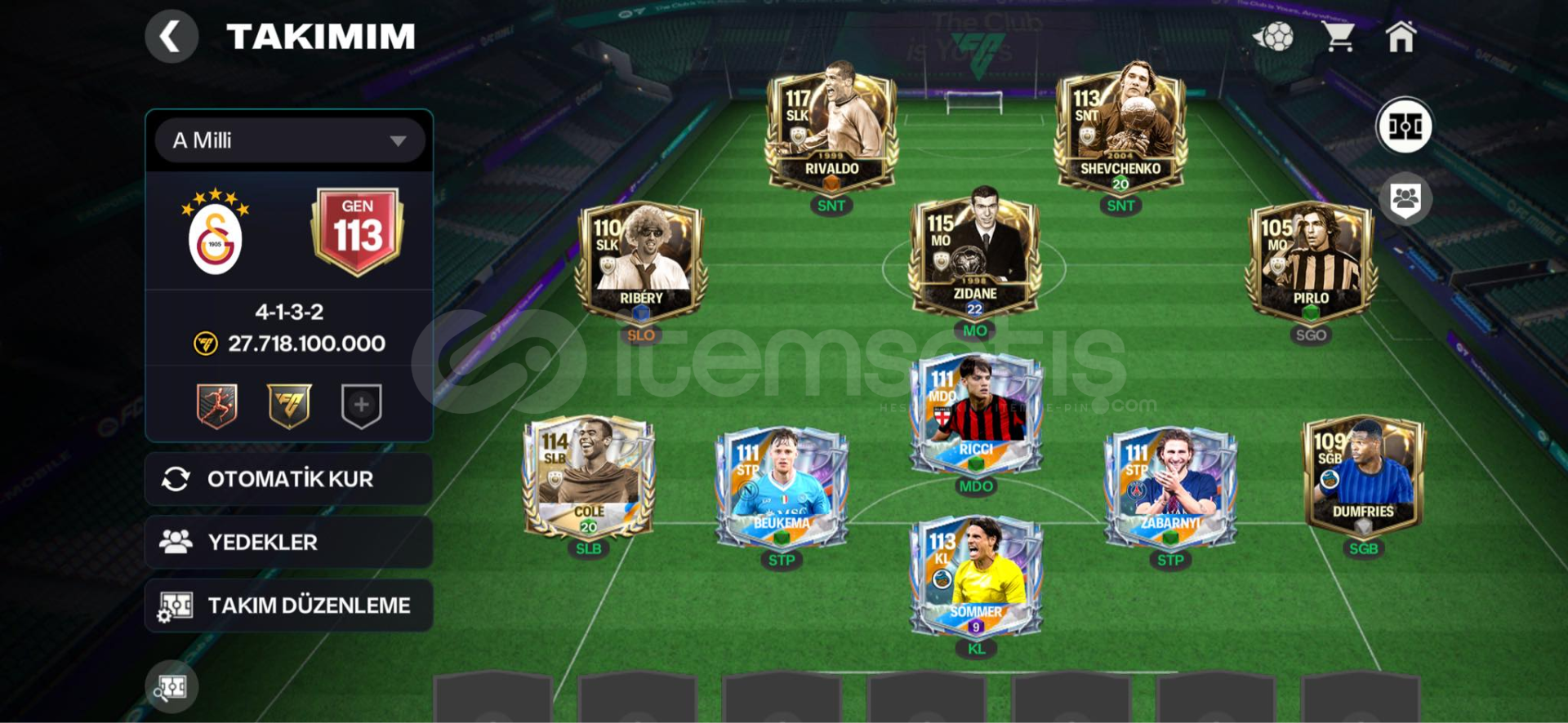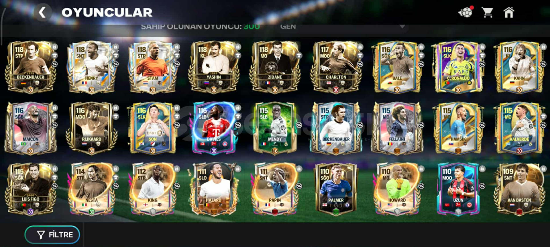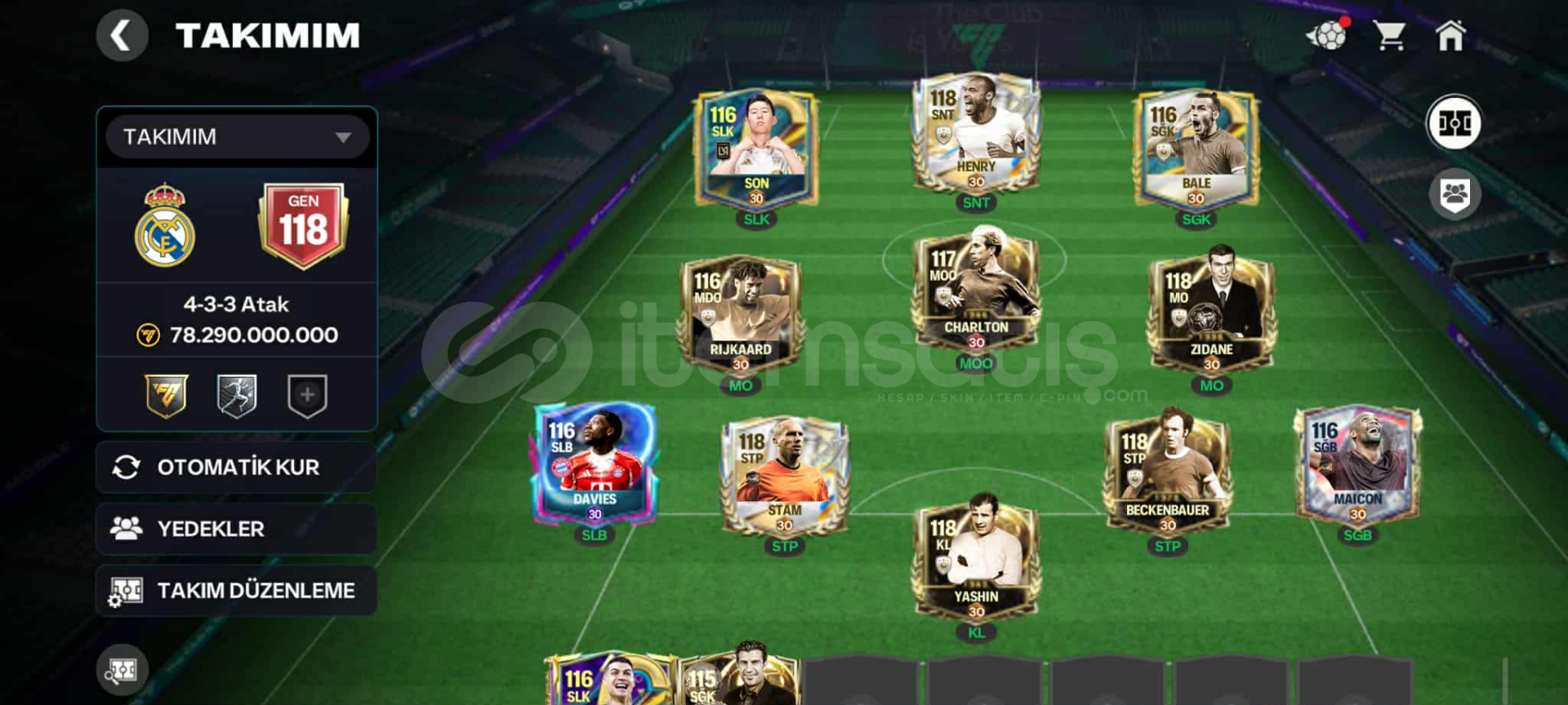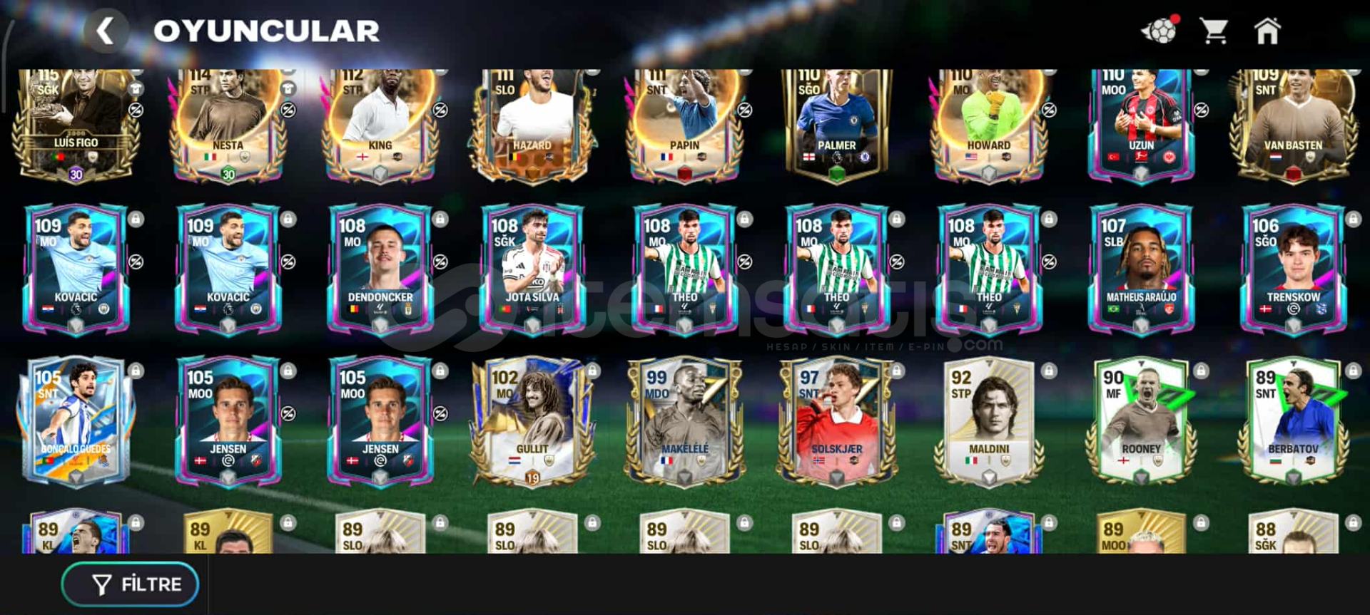 118Gen. Satilir oyuncu bol. Yedek bol. Puan bol. Ekstralı hesap. Ligi en iyi liglerden. 119 gen icin 3 yukseltme mevcut. Tek bag.