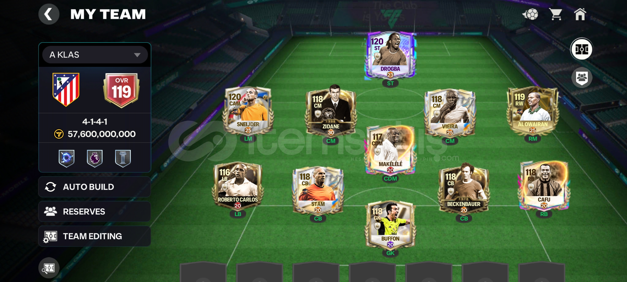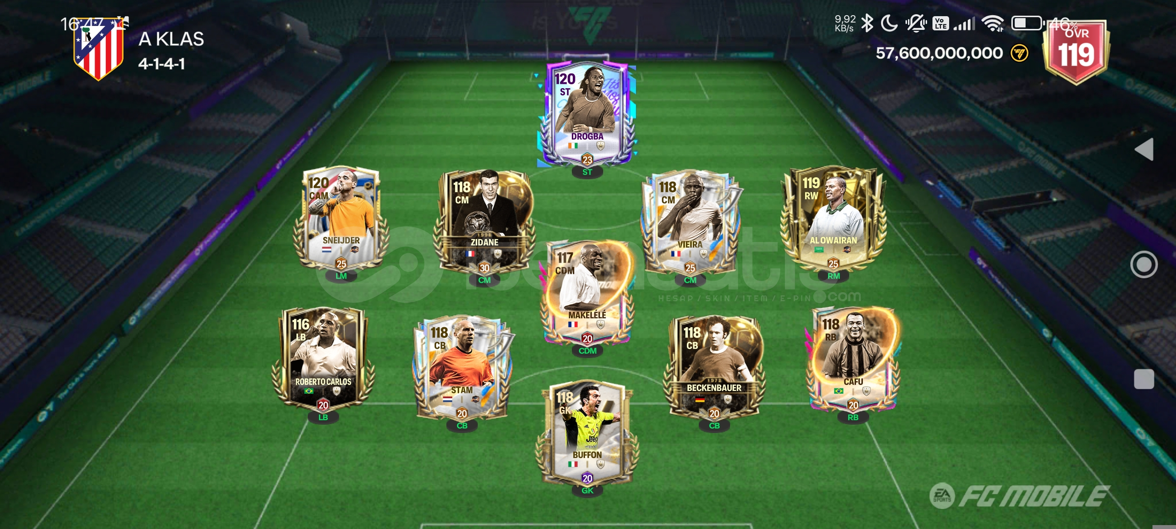 119 Gen +26k cevher +55k antrenman puan +1.2k RUP (Derece Puan) +VSA Fc şampiyonu +53 sv. +59 sv. lig satılabilir ikonlar (1.9 milyar Stam full,1.4 Beckenbauer full,1.2 R.Carlos full a yakın Kvara,Raphinha,Bellingham da vs var..