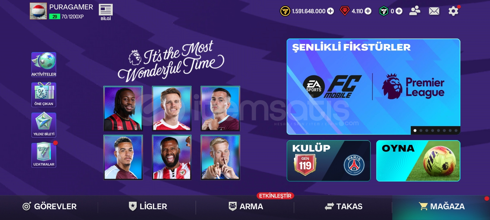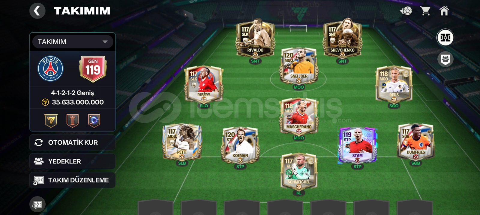 -SADECE EA BAĞI VARDIR MAİLİYLE BİRLİKTE DEVİR EDİLECEKTİR-119 GEN REKABETÇİ MODLARDA FC ŞAMPİYONUDUR-4.5 MİLYAR COİNS DEĞERİNDE SATİLABİLİR OYUNCU VE 1.5 MİLYAR COİNS VARDIR