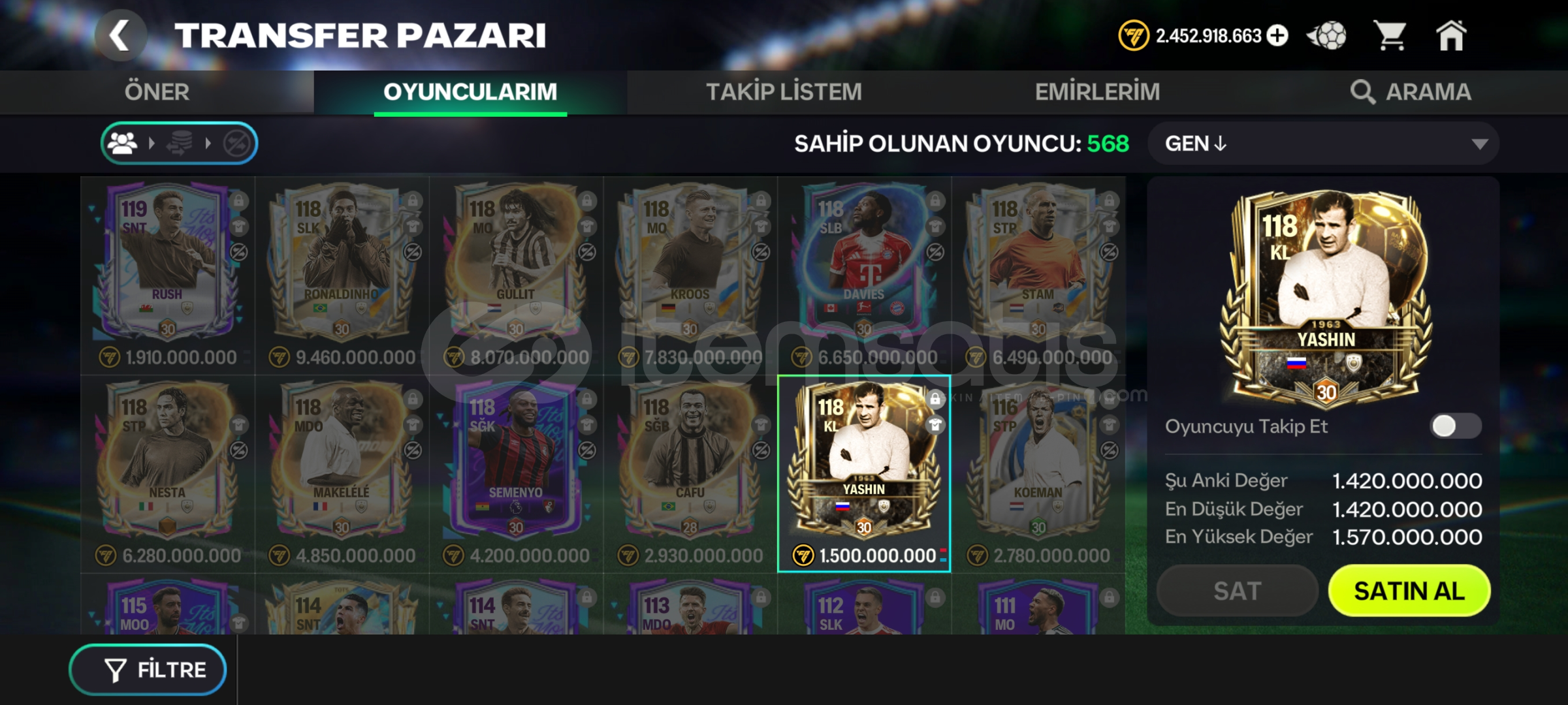 1 SATILABİLİR OYUNCUDA VAR 1.5 MİLYAR YASHİN
