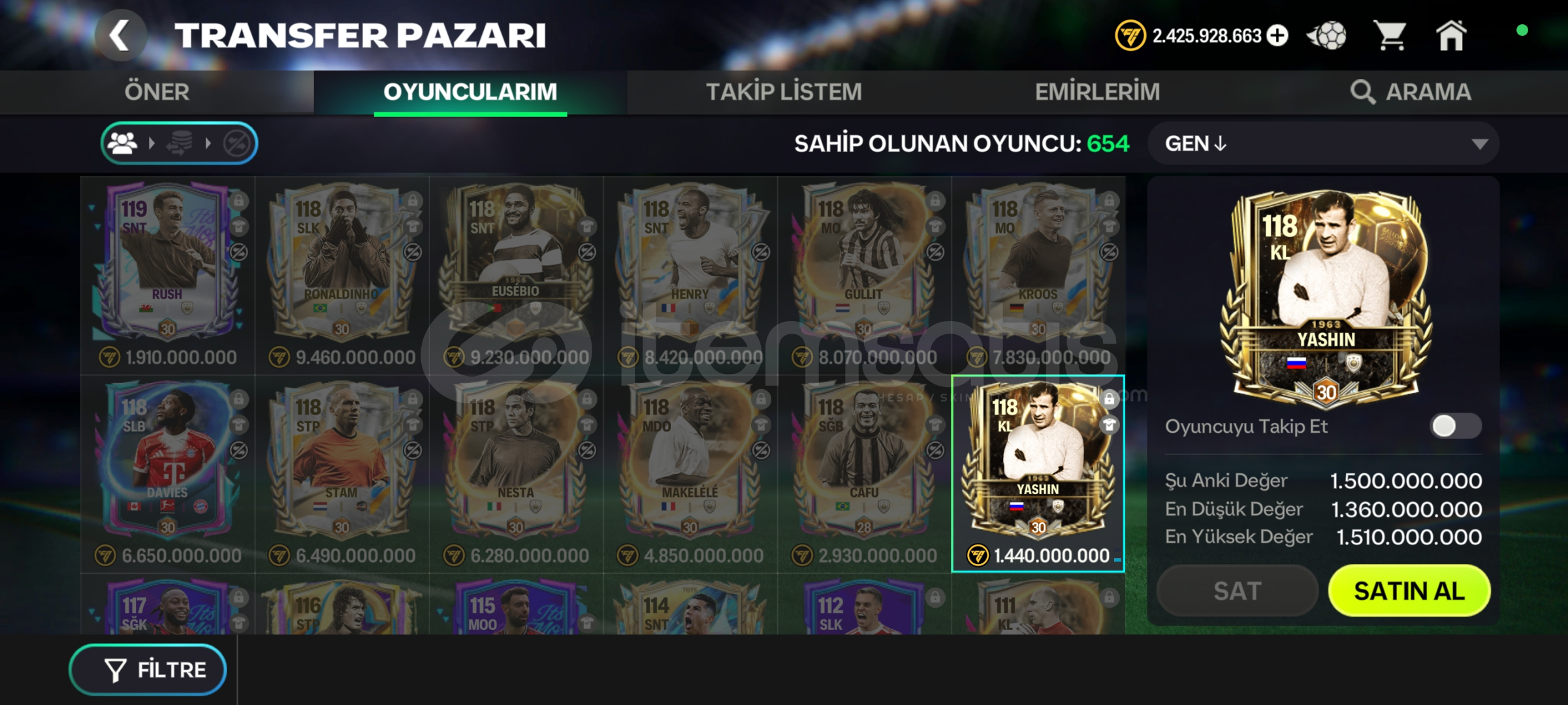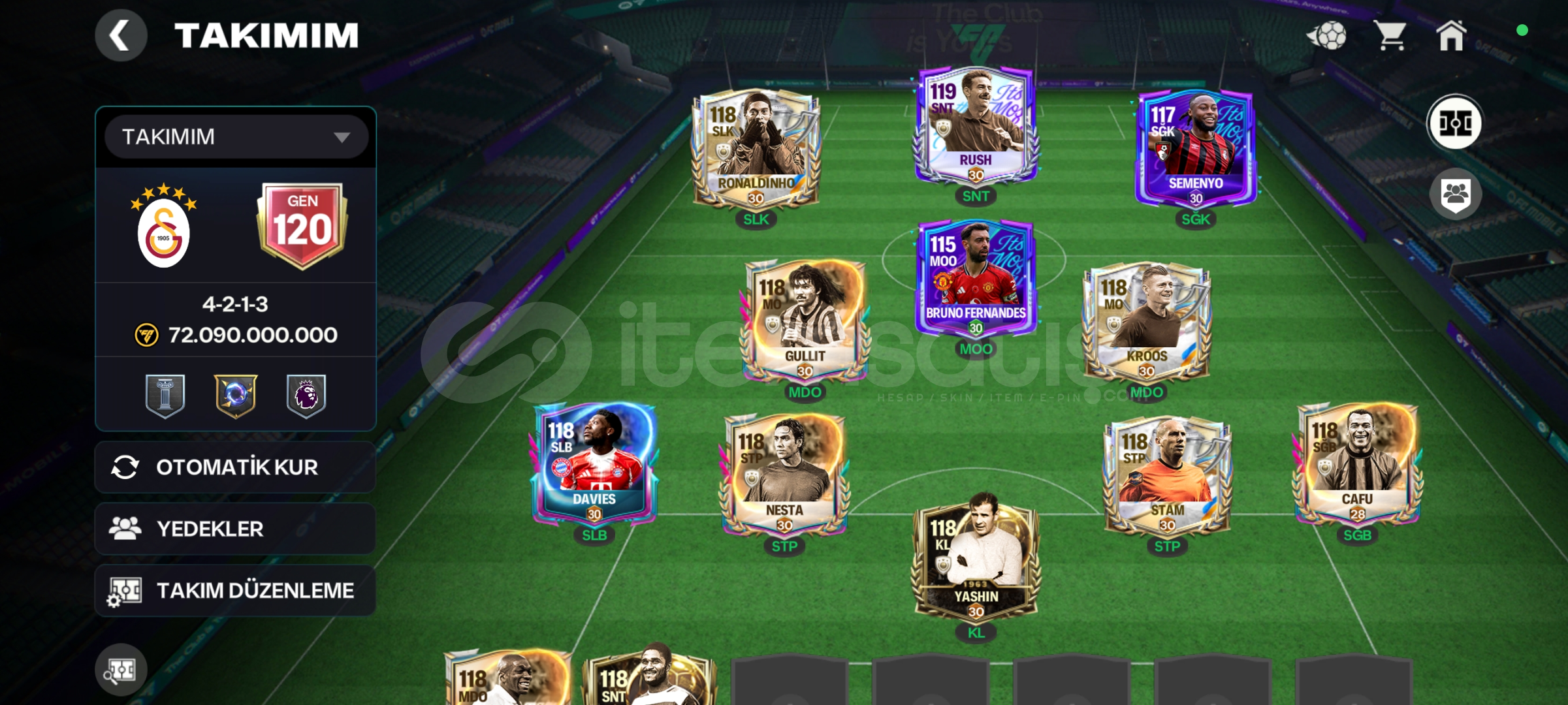 HESAP İÇERİĞİ:HESAP NORMALDE 121 GEN AMA 2. YIL DÖNÜMÜ XP LERİ KALKTIĞI İÇİN 120 GENE DÜŞTÜ YENİ GELEN ETKİNLİKTE XP KASIP TEKRARDAN 121 GEN YAPABİLİRSİNİZ!BU HESAP ÖLÜYÜ DİRİLTİR!2.5 MİLYAR COİNS VAR BUDA +1 115 GEN OYUNCU DEMEK1 SATILABİLİR OYUNCUDA VAR 1.5 MİLYAT YASHİNYANİ TOPLAMDA 4 MİLYAR COİNS VARD...