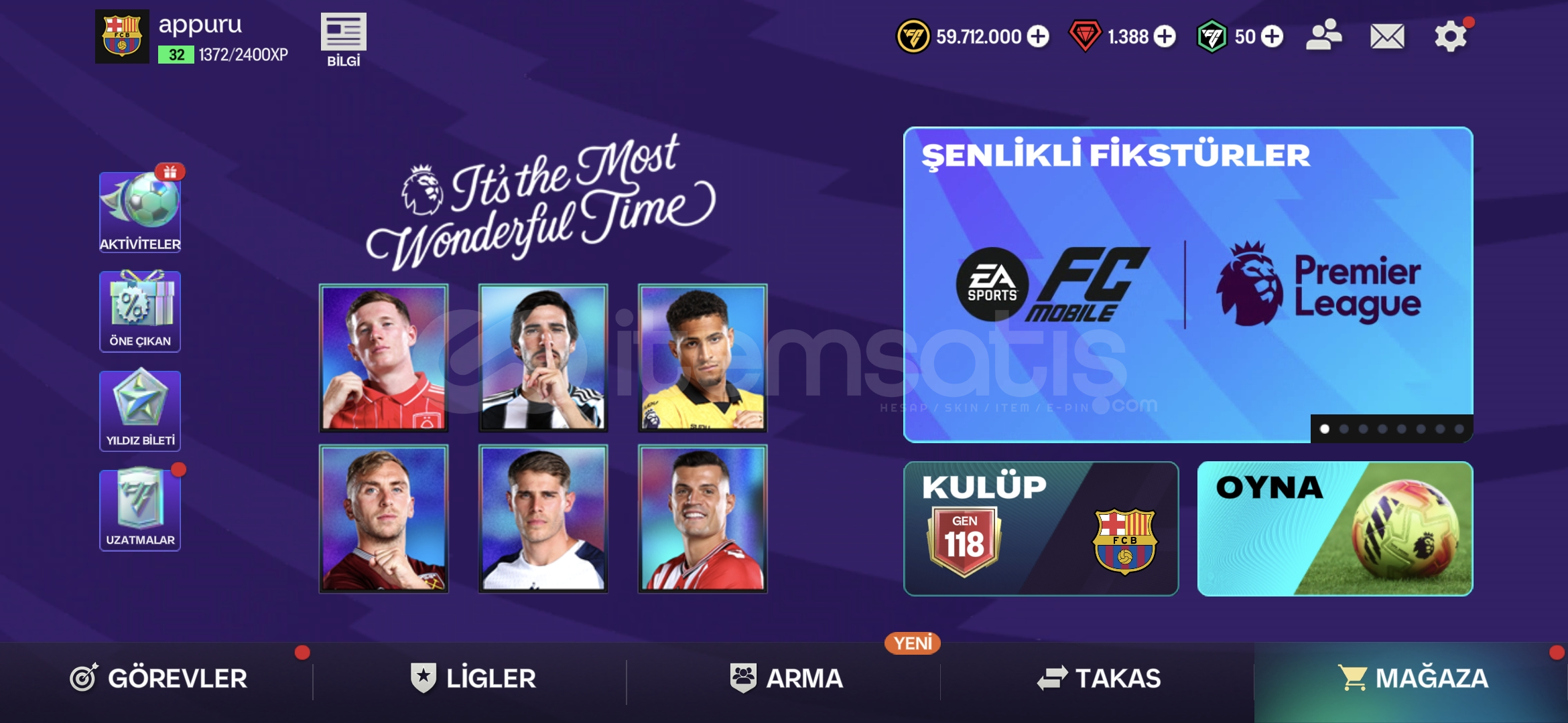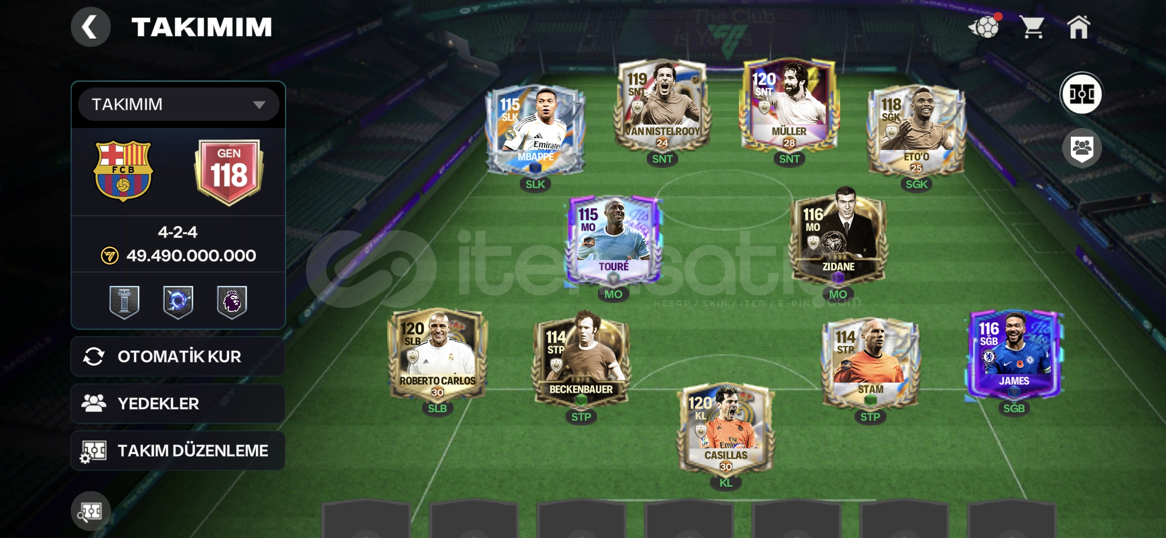 Almayı düşünenler yazsın.Hesap şuanda 118 Gen ama potansiyali 121 GenUcuza bırakmam imzali roberto carlos olduğu için.Hesapta113 Mbappe114 Van Nistereoly115 Muller113 Etoo113 Zidane115 Toure115 Roberto Carlos İmzalı113 Beckenbaurer113 Stam114 James115 CasillasNOT: Marketteki En Potansiyalli Hesap budur Almayan kaçırır.