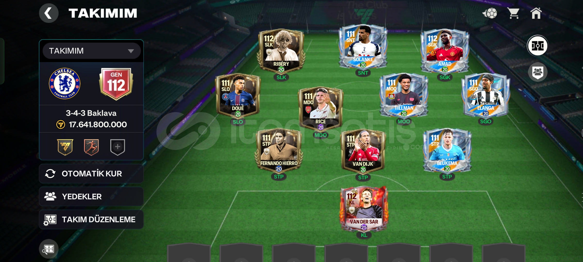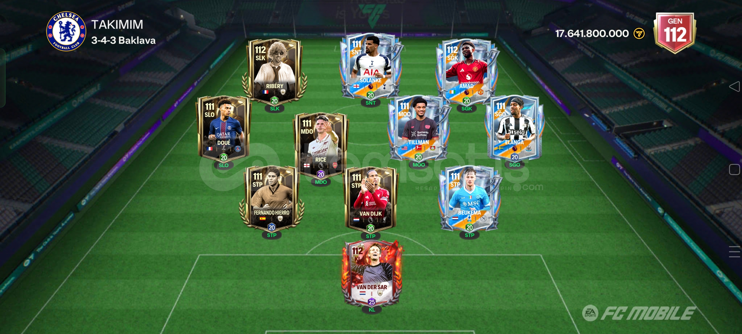 Takımdaki oyuncular göründüğü gibi en az 111 gen ve takım 112 gendir Google play games bağlı değildir sadece EA hesabına bağlıdır EA hesabı için maili ve şifreyi alan kişiye vereceğim oyunu uzun bir süredir oynamadığım için satmaya karar verdim pazarlık vardır