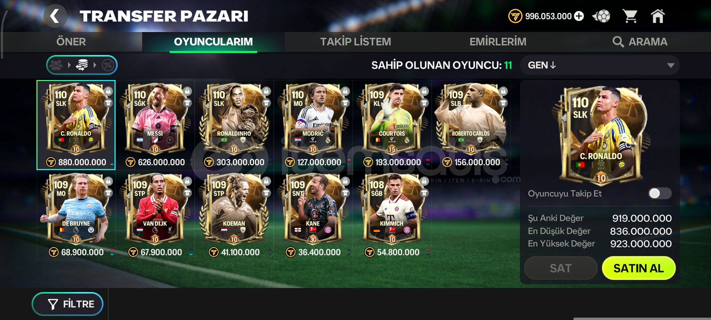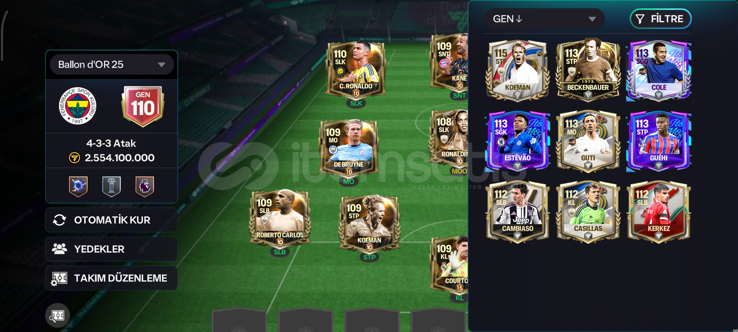 ​🏆 Efsanevi Kadro : Piyasanın özel etkinlik kartlarından oluşan yetenekli ve güçlü oyuncularla kurulu, size her maçta üstünlük sağlayacak, her pozisyonda dengeli bir kadro.