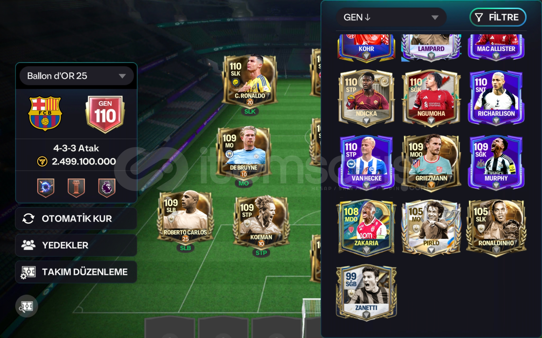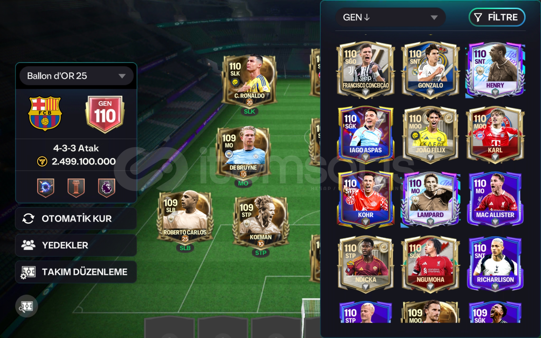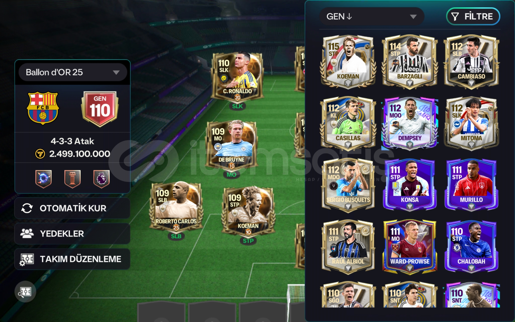 ​🏆 Efsanevi Kadro : Piyasanın özel etkinlik kartlarından oluşan yetenekli ve güçlü oyuncularla kurulu, size her maçta üstünlük sağlayacak, her pozisyonda dengeli bir kadro.