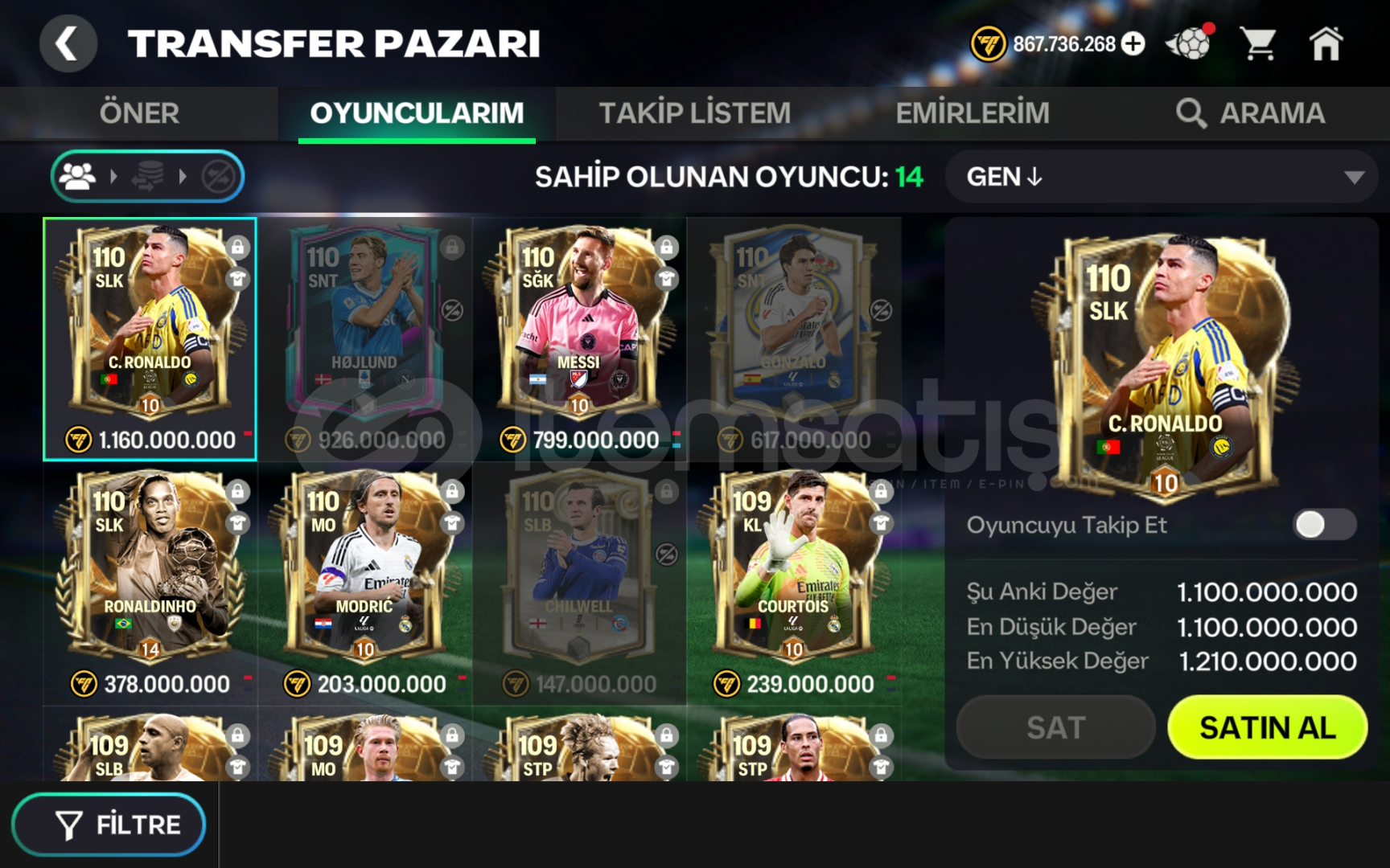 ​🏆 Efsanevi Kadro : Piyasanın özel etkinlik kartlarından oluşan yetenekli ve güçlü oyuncularla kurulu, size her maçta üstünlük sağlayacak, her pozisyonda dengeli bir kadro.