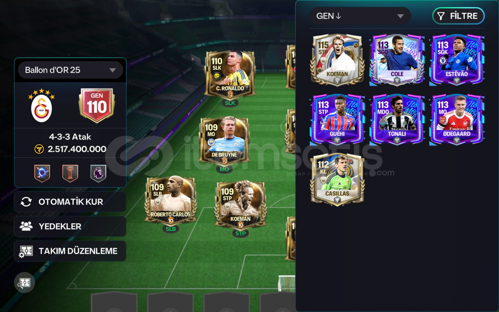 ​🏆 Efsanevi Kadro : Piyasanın özel etkinlik kartlarından oluşan yetenekli ve güçlü oyuncularla kurulu, size her maçta üstünlük sağlayacak, her pozisyonda dengeli bir kadro.