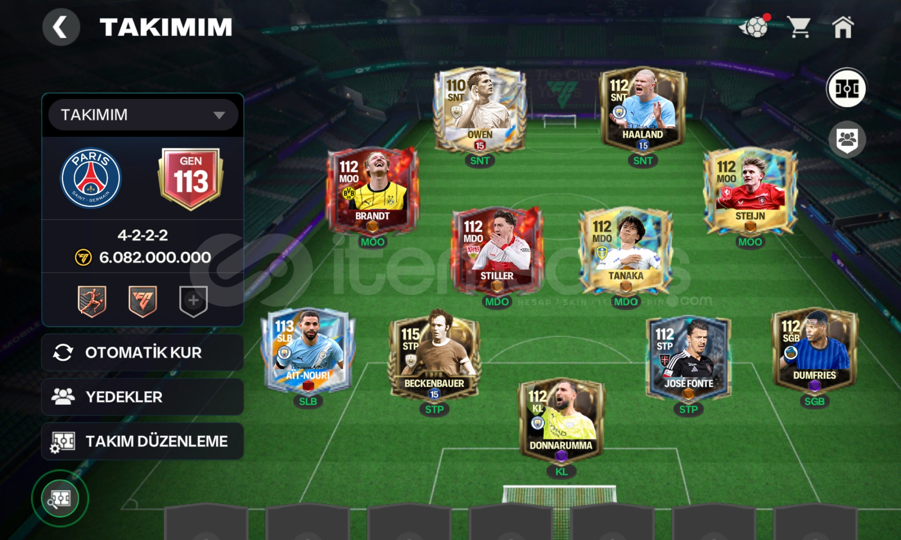 Hesap sadece ea ye bağlıdır mailiyle beraber verilecektir oyuncuların çoğu satılabilirdir bir kaç yükseltmeye 114 gen olacaktır ekstradan 500 milyon coinste hesapta bulunuyor max gen beckanbauer de kadroda mevcuttur