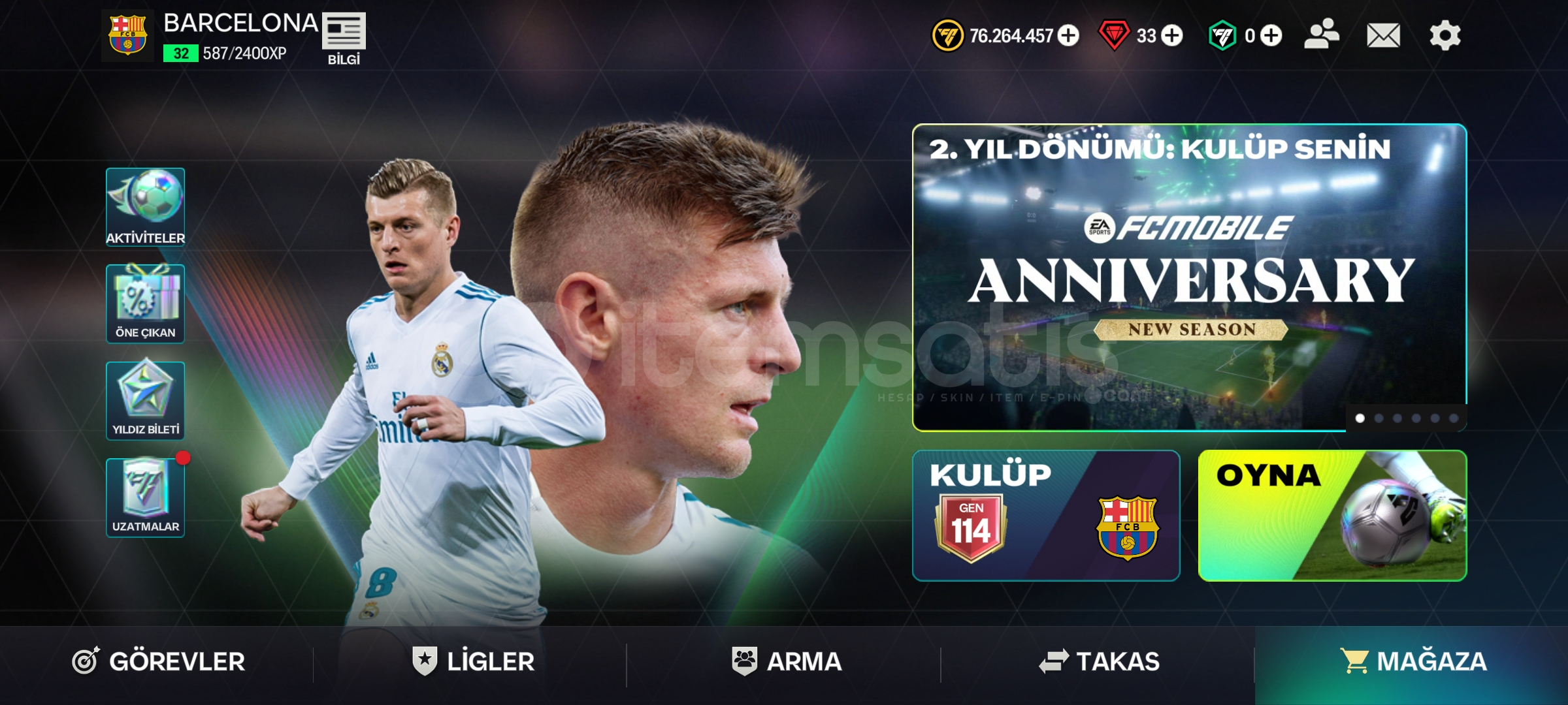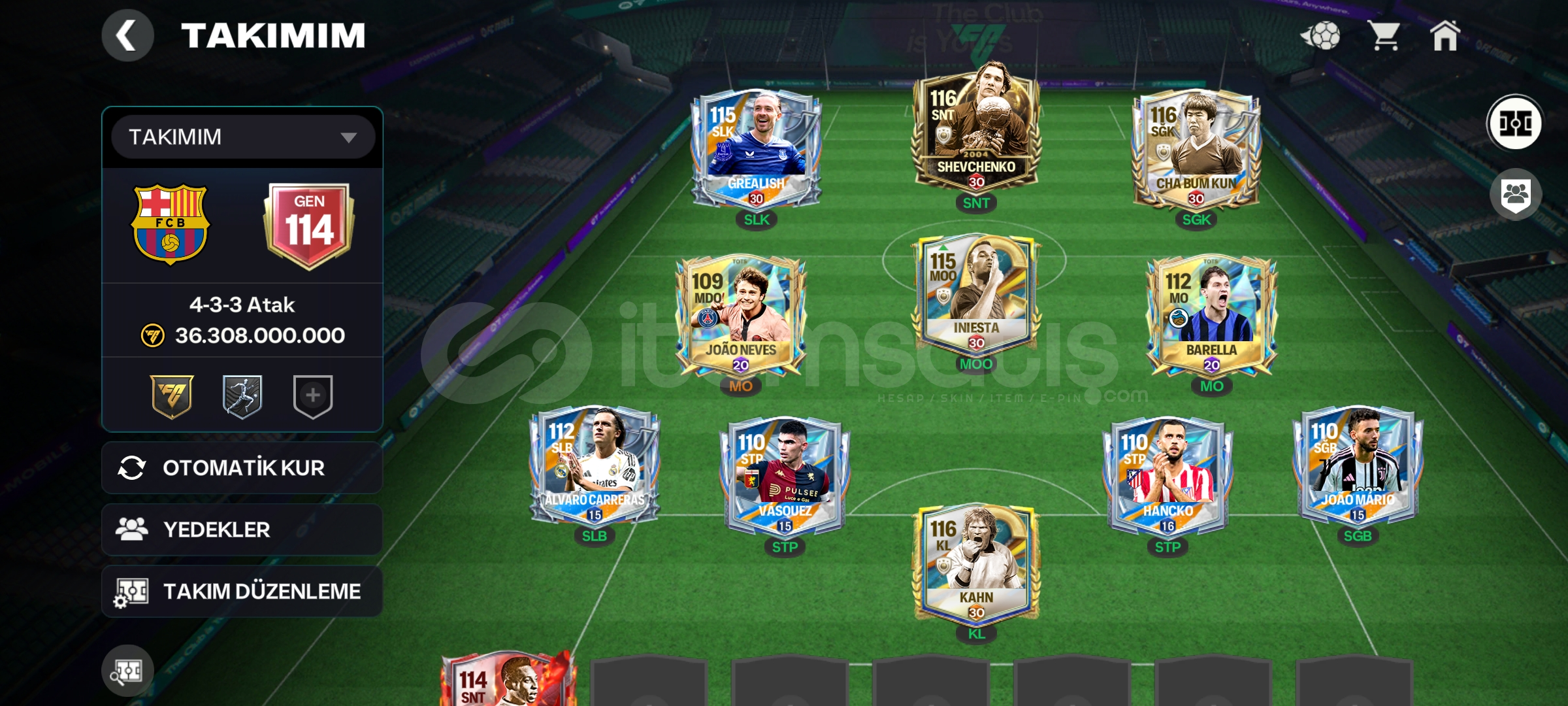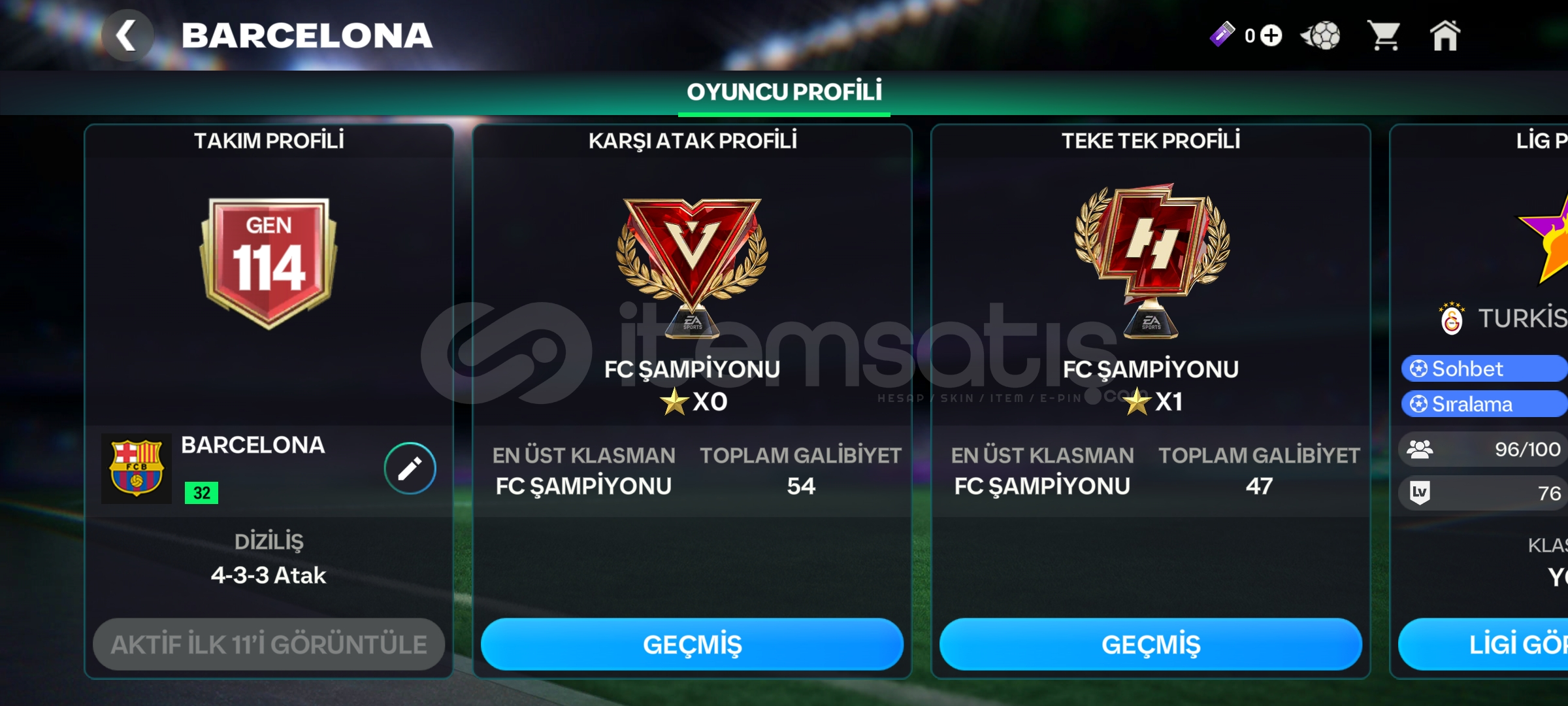 Direk hesabın bağlı olduğu mail adresi ve şifresi verilecektir en kısa sürede teslim yaparım, oyunu bıraktığım için satıyorum fiyatta pazarlık payı vardır , ligden her hafta 10 k cevher geliyor karşı atak ve teke tek FC şampiyonu kadroya görsellerden bakabilirsiniz