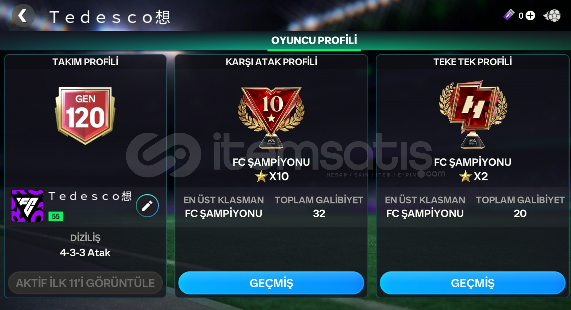 🔥 BU HESAP KAÇMAZ 🔥GEN: 120 🧬 Arma 3 Sv +1 GenDivision Rivals 🆚️Karşı atak FC ŞAMPİYONU 🏆Teke tek FC ŞAMPİYONU 🏆T.Direktör FC ŞAMPİYONU 🏆Öne Çıkanlar: Toure 120, Zambrotta 120, Riise 120, Al Owairan 119, Dalglish 118, Kvaratskhelia 118, Thuram 118, Charlton 118, Schweinsteiger 118, Chiellini 118, Kahn, Lampard 116Rekortmenler Parçası: 7456750 Derece Fi&#...